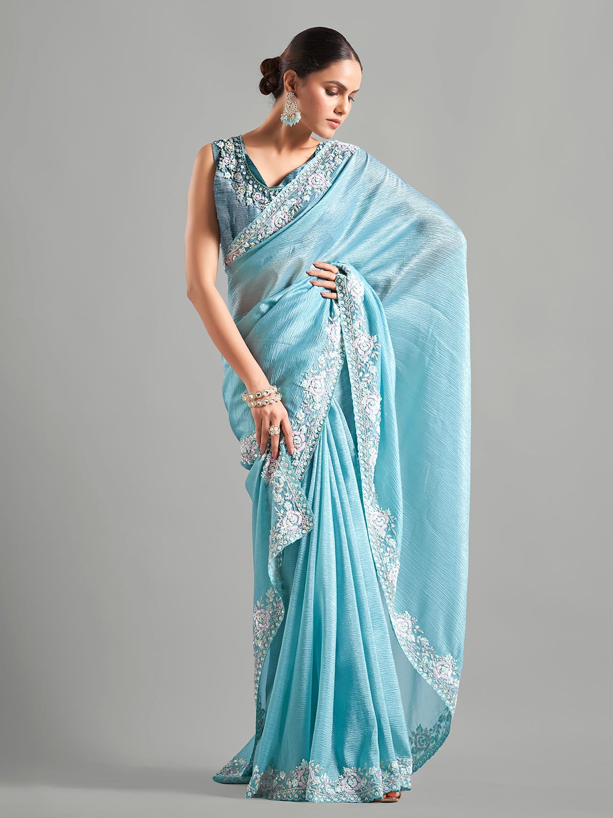Beautiful Sky Blue Chiffon Saree