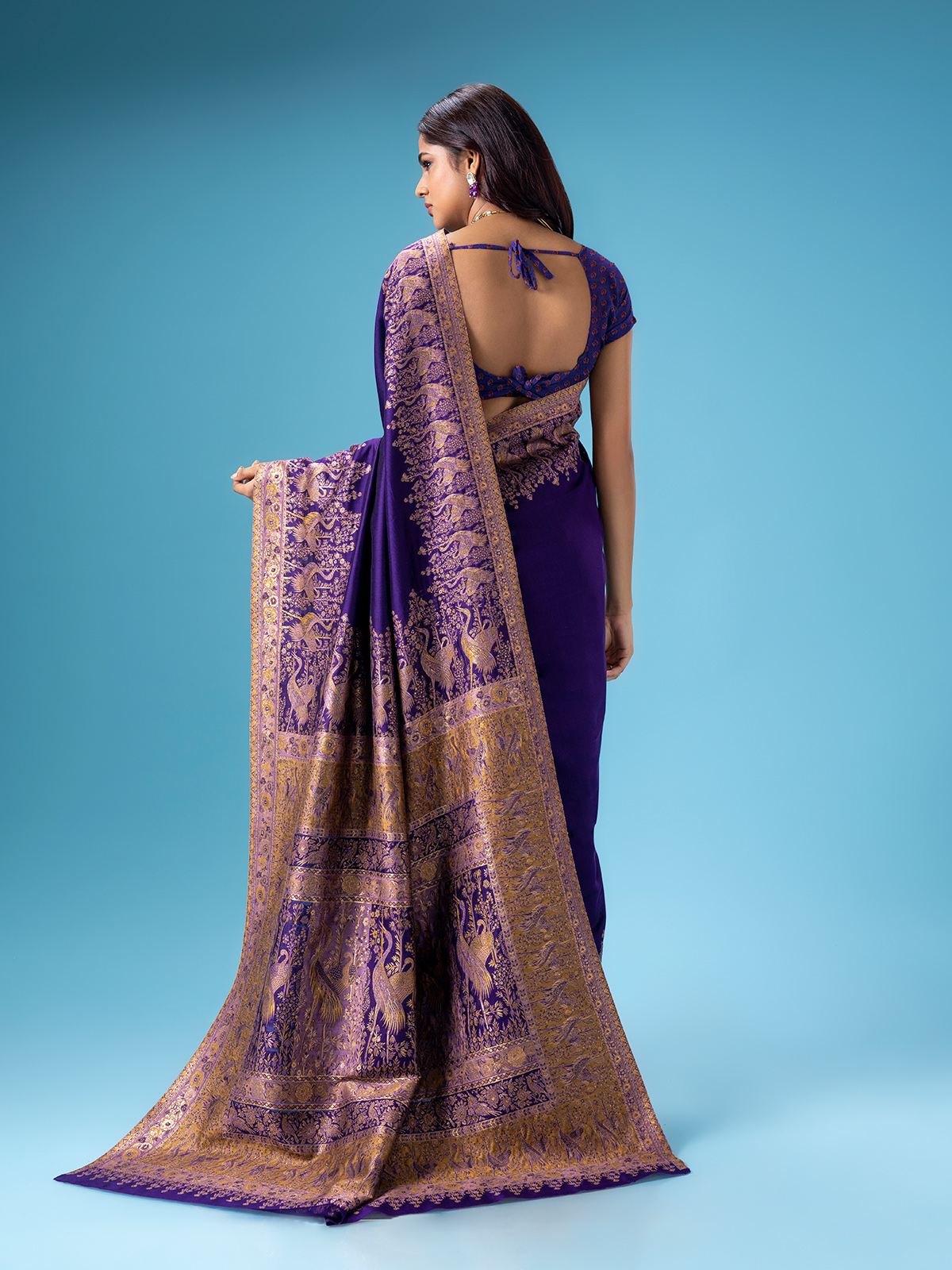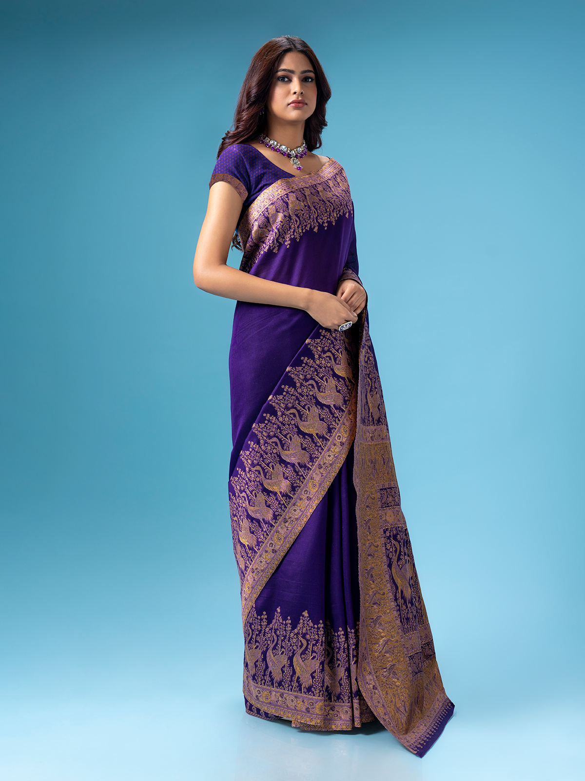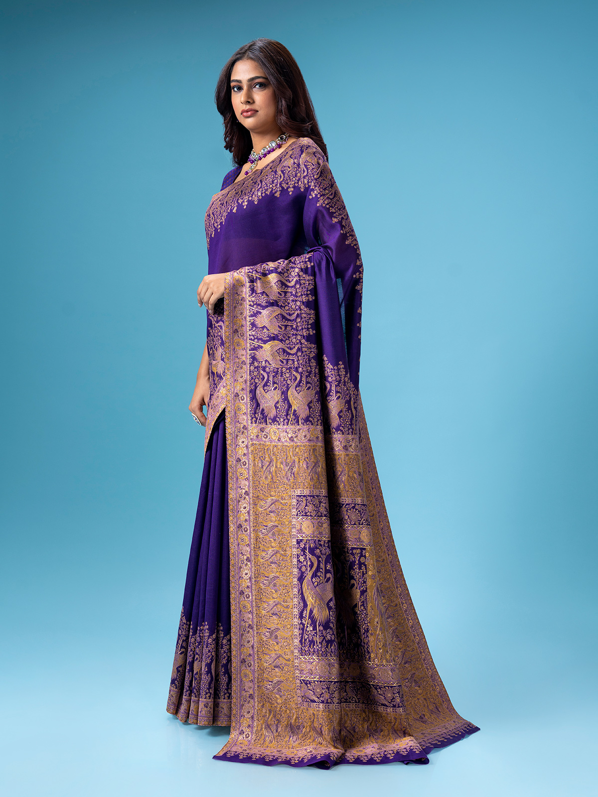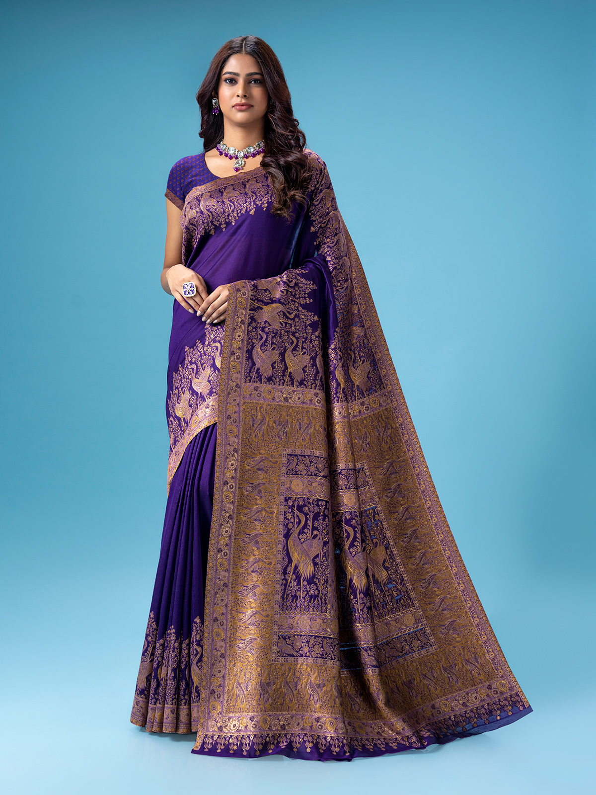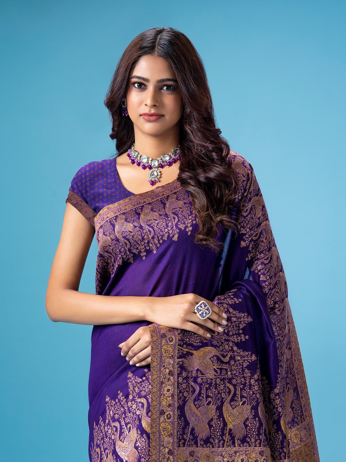 Beautiful Violet Pashmina Silk Saree For Wedding