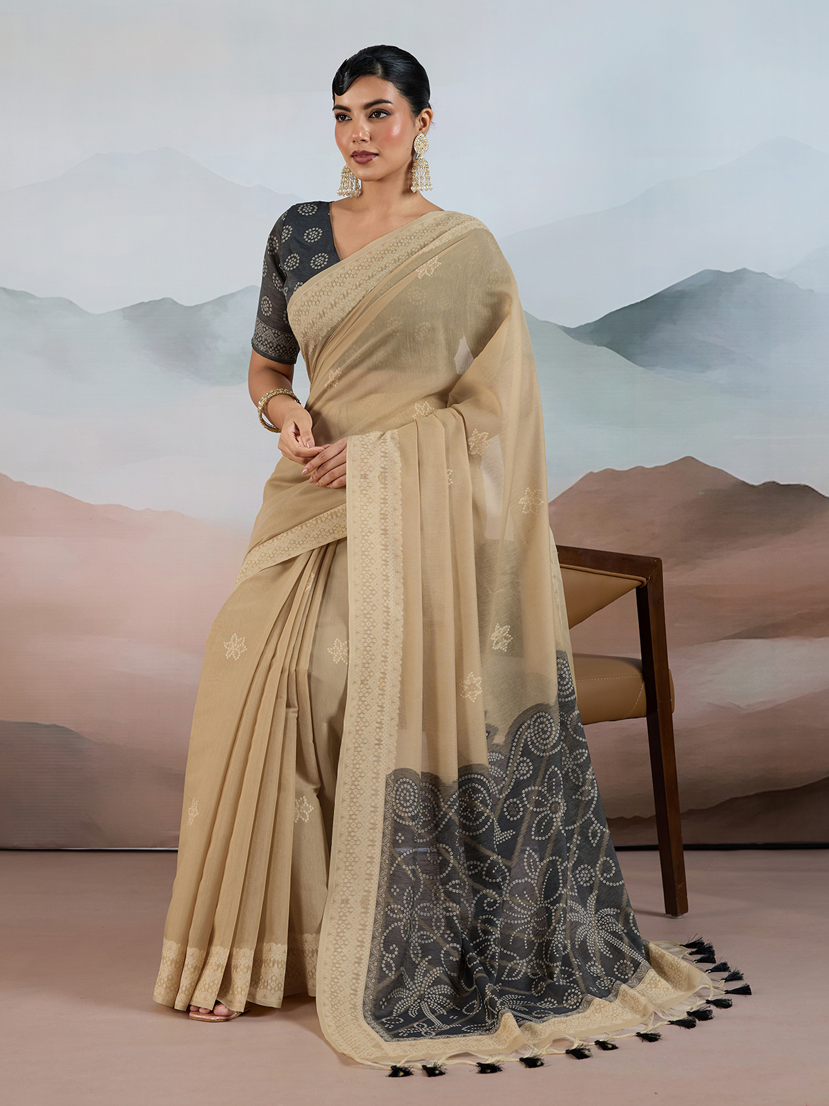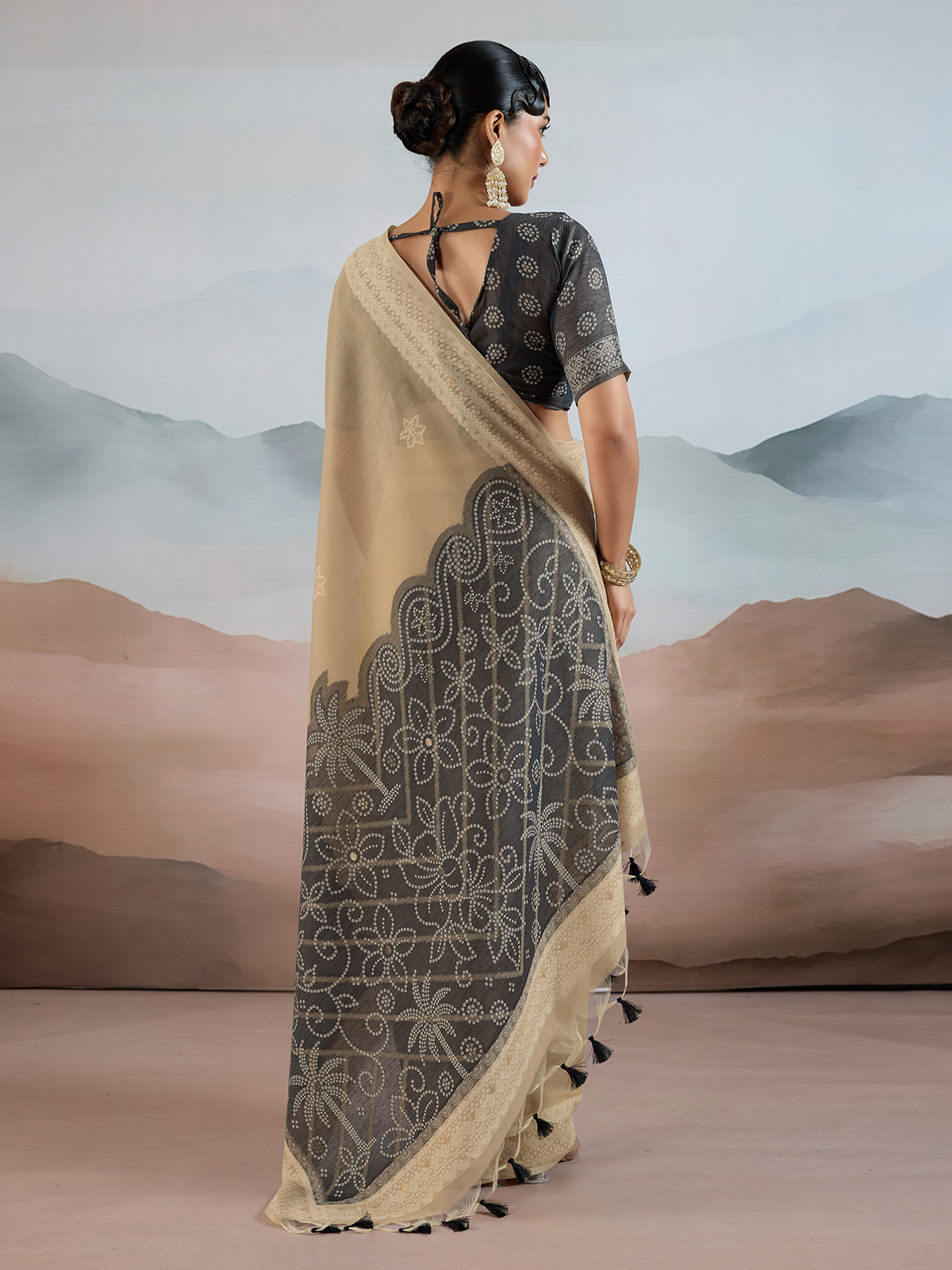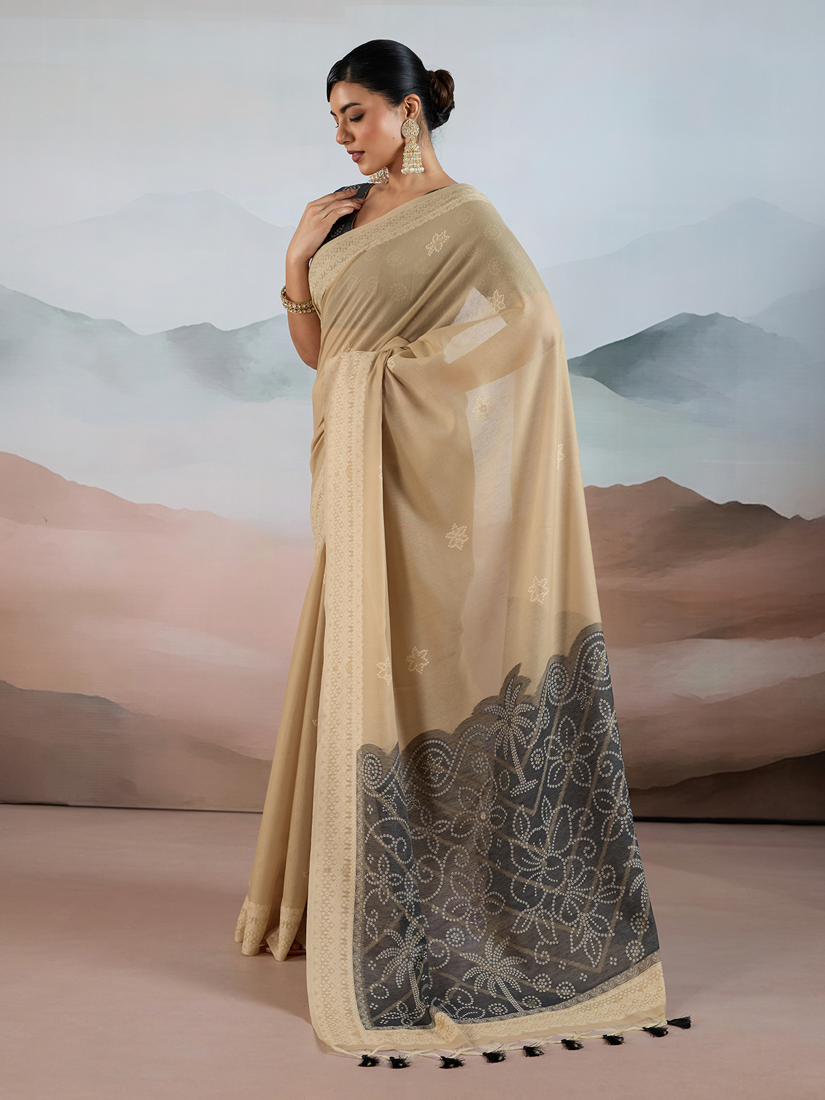 Beige Bandhej Inspired Viscose Cotton Saree For Festive