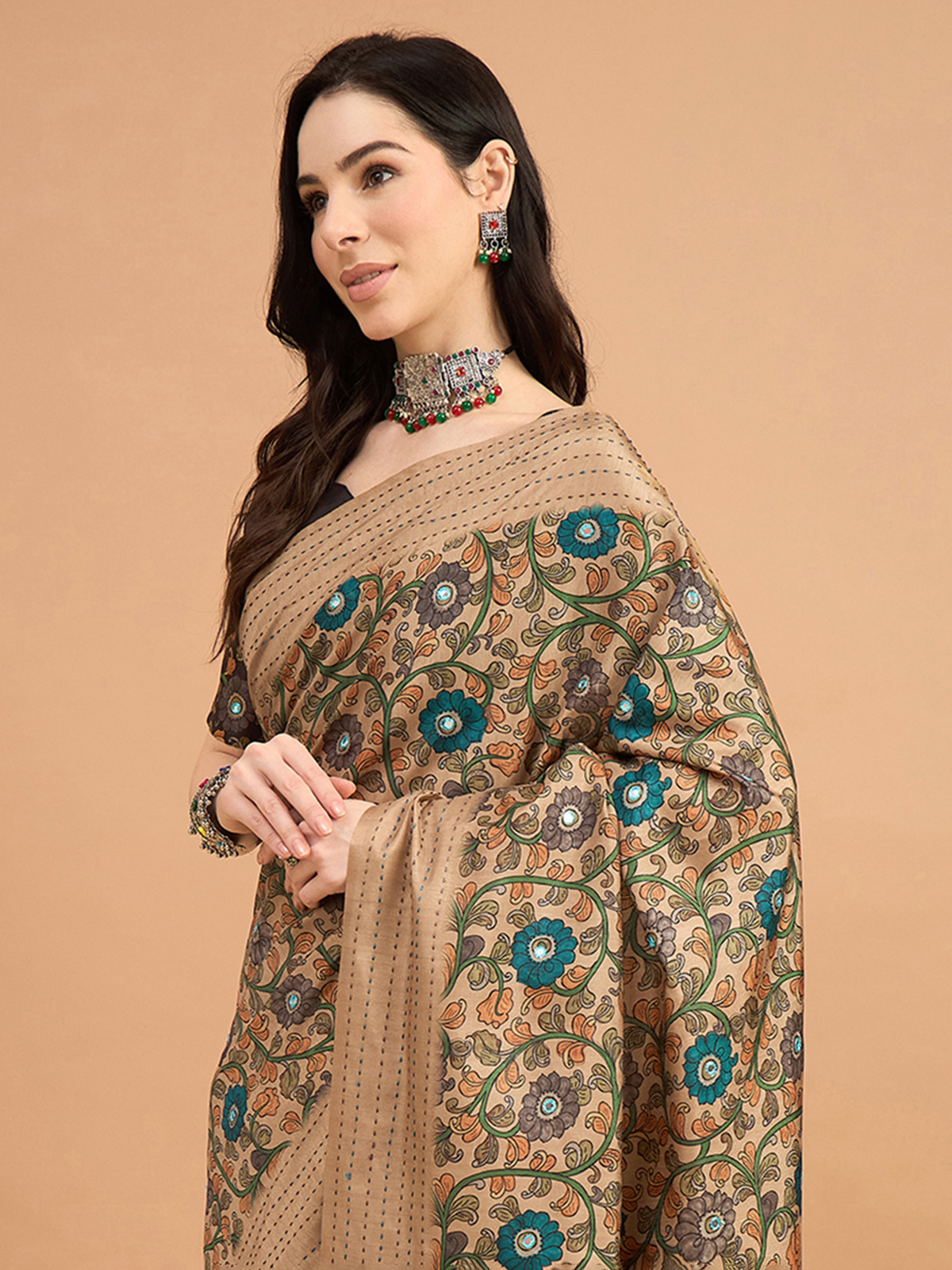 Beige Cozy Silk Saree With Elegant Print