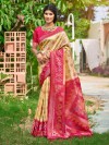 Wrapped in elegant purple and beige silk, this saree radiates warm sophistication. Its printed motifs whisper graceful patterns, adding a poetic charm to every fold. Completed with an unstitched blouse, it offers a timeless look ideal for festive evenings, traditional functions, and meaningful cultural celebrations.