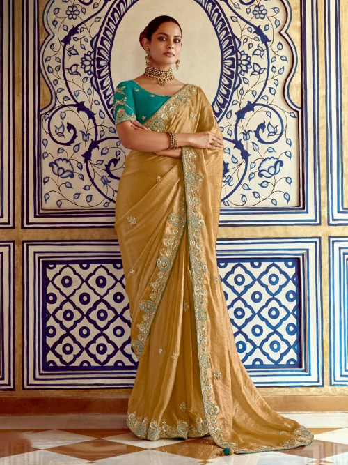 Beige Soft Tissue Silk Saree With Resham Work
