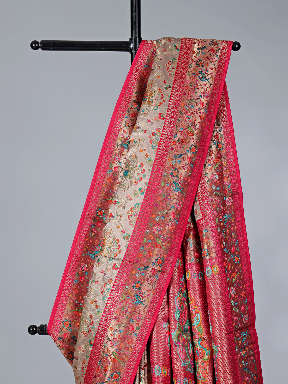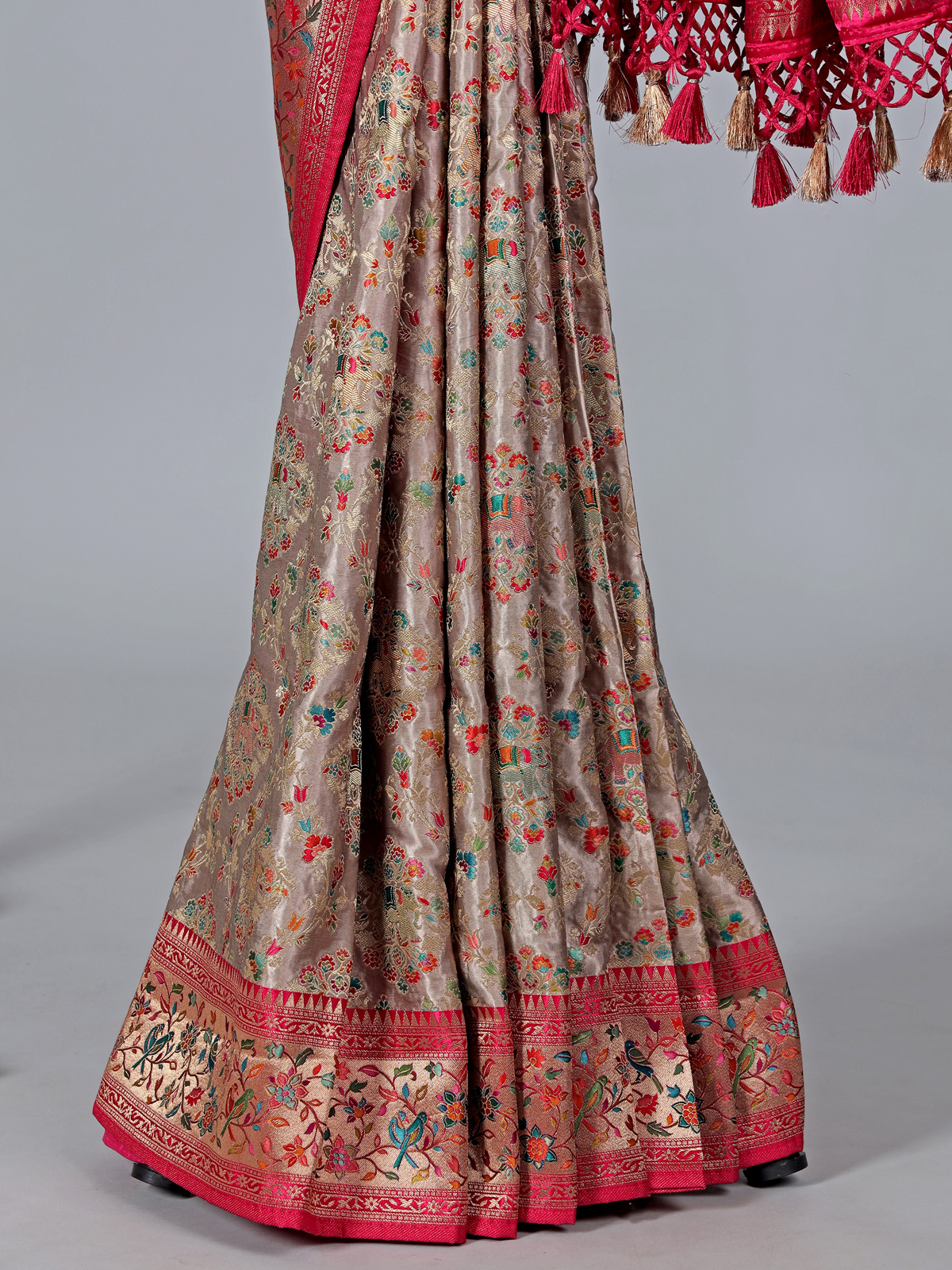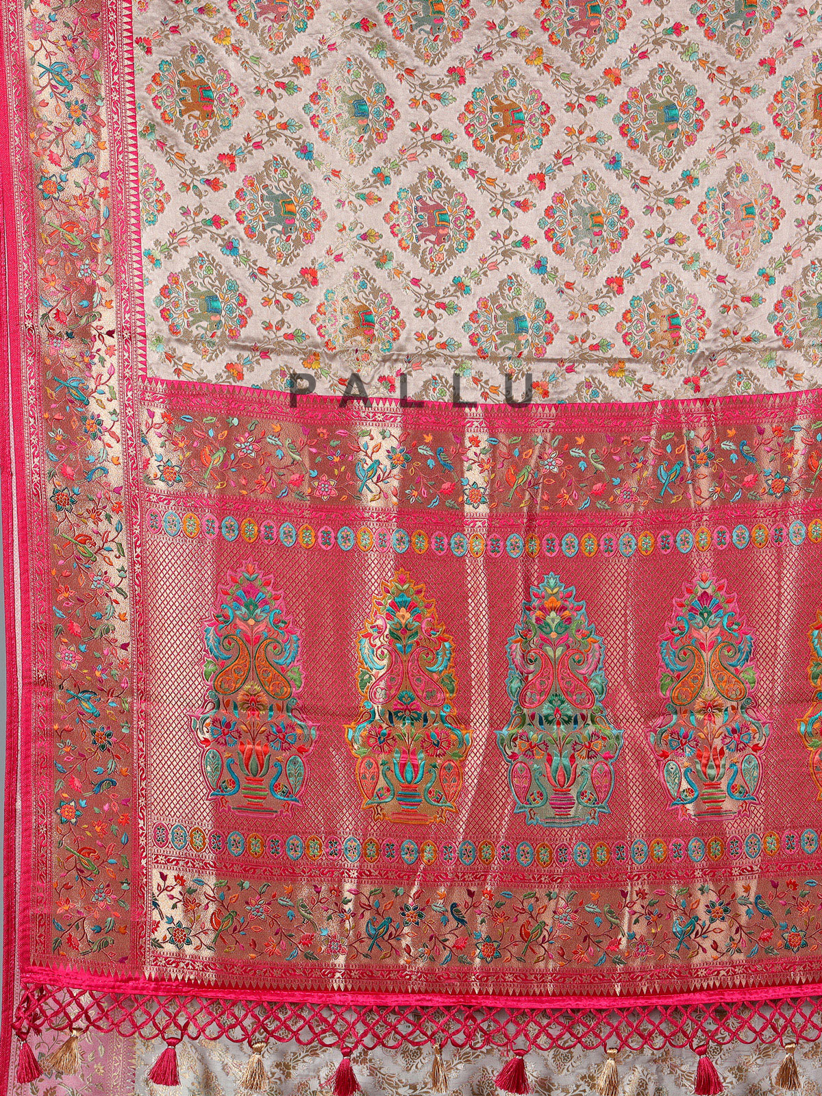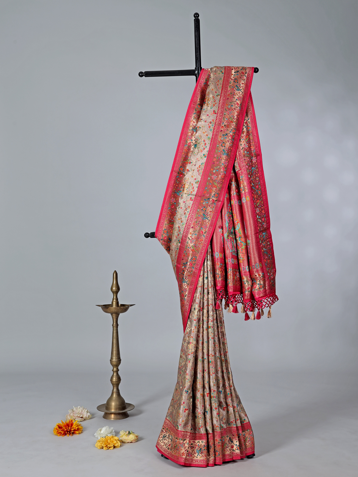 Beige Wedding Wear Semi Pashmina Silk Saree