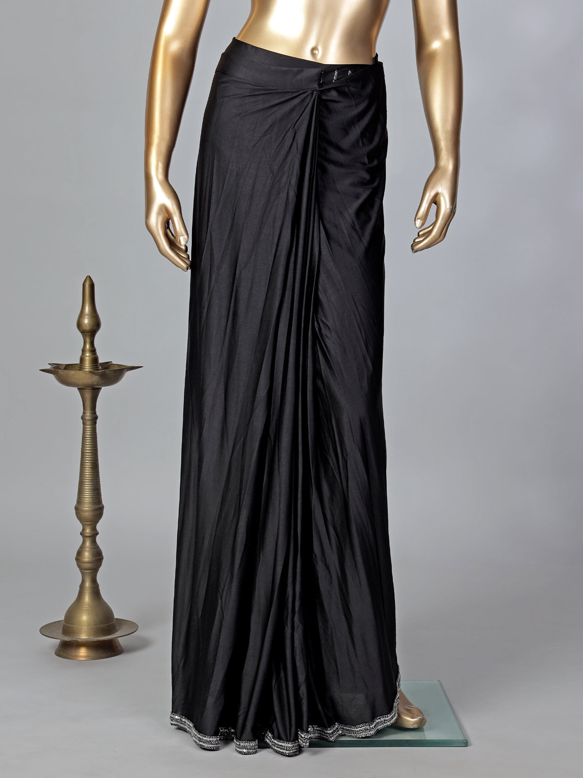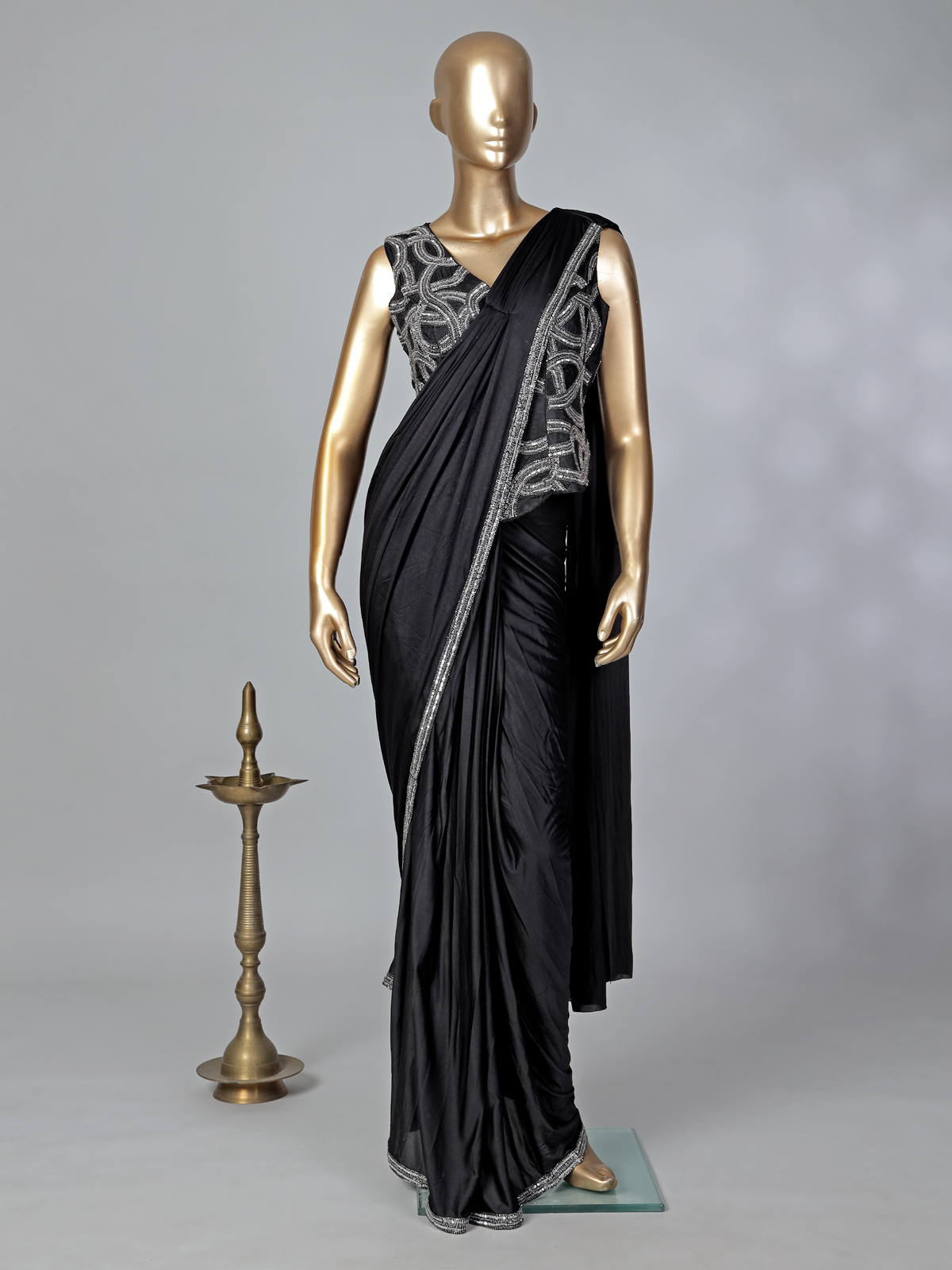 Black Lycra Ready To Wear Reception Saree