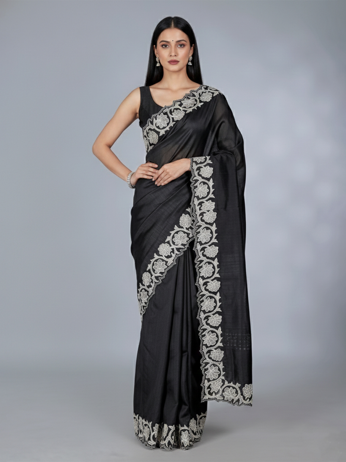 Black Tissue Silk Saree With Embroidery
