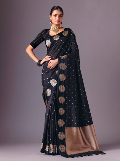 Black Zari Butti Semi Silk Saree