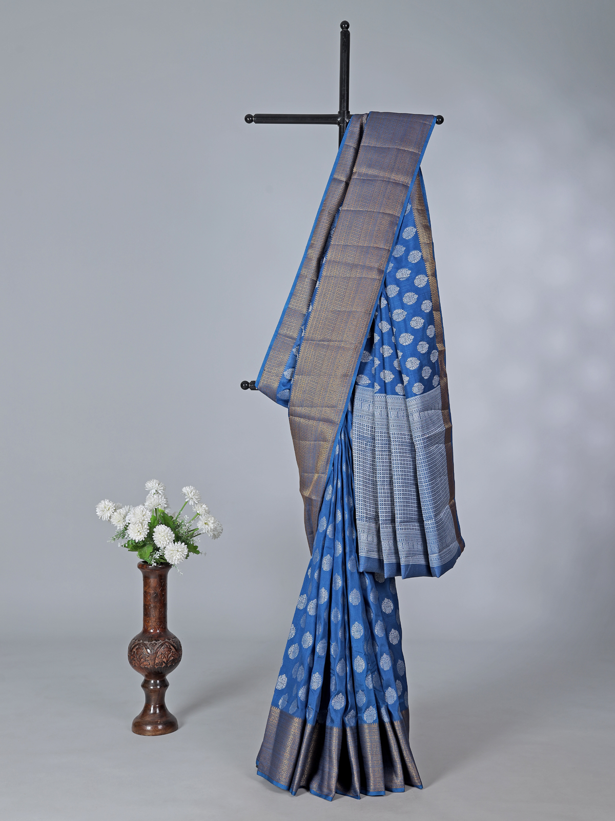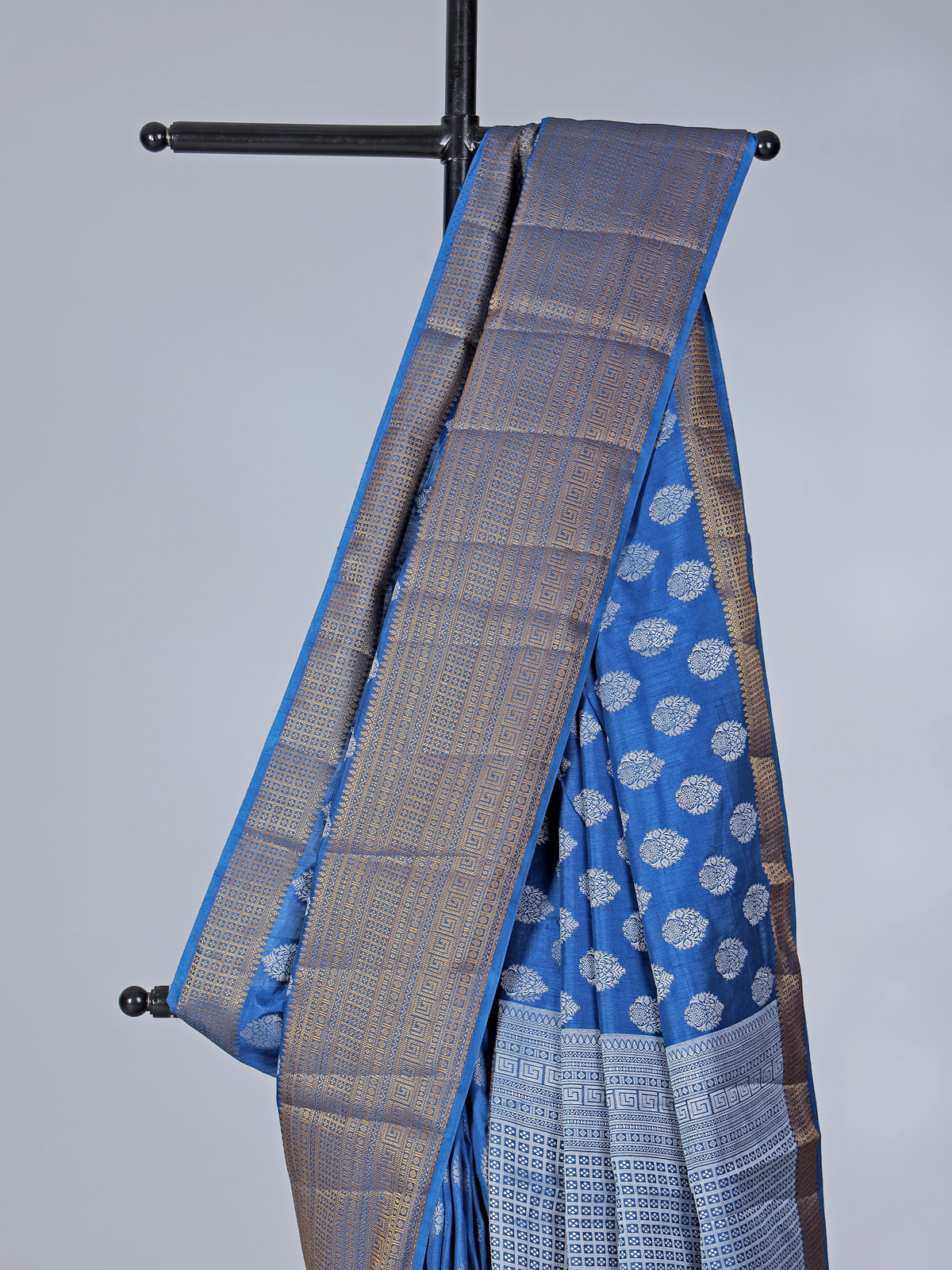 Celebrate timeless grace and feminine charm in this stunning blue art silk saree crafted to elevate every special moment with refined elegance and poise. Adorned with golden zari work, the ensemble reflects rich tradition and a subtle luxurious shimmer. Perfect for festive celebrations and weddings, it comes with an unstitched blouse piece for a customized and flattering fit.