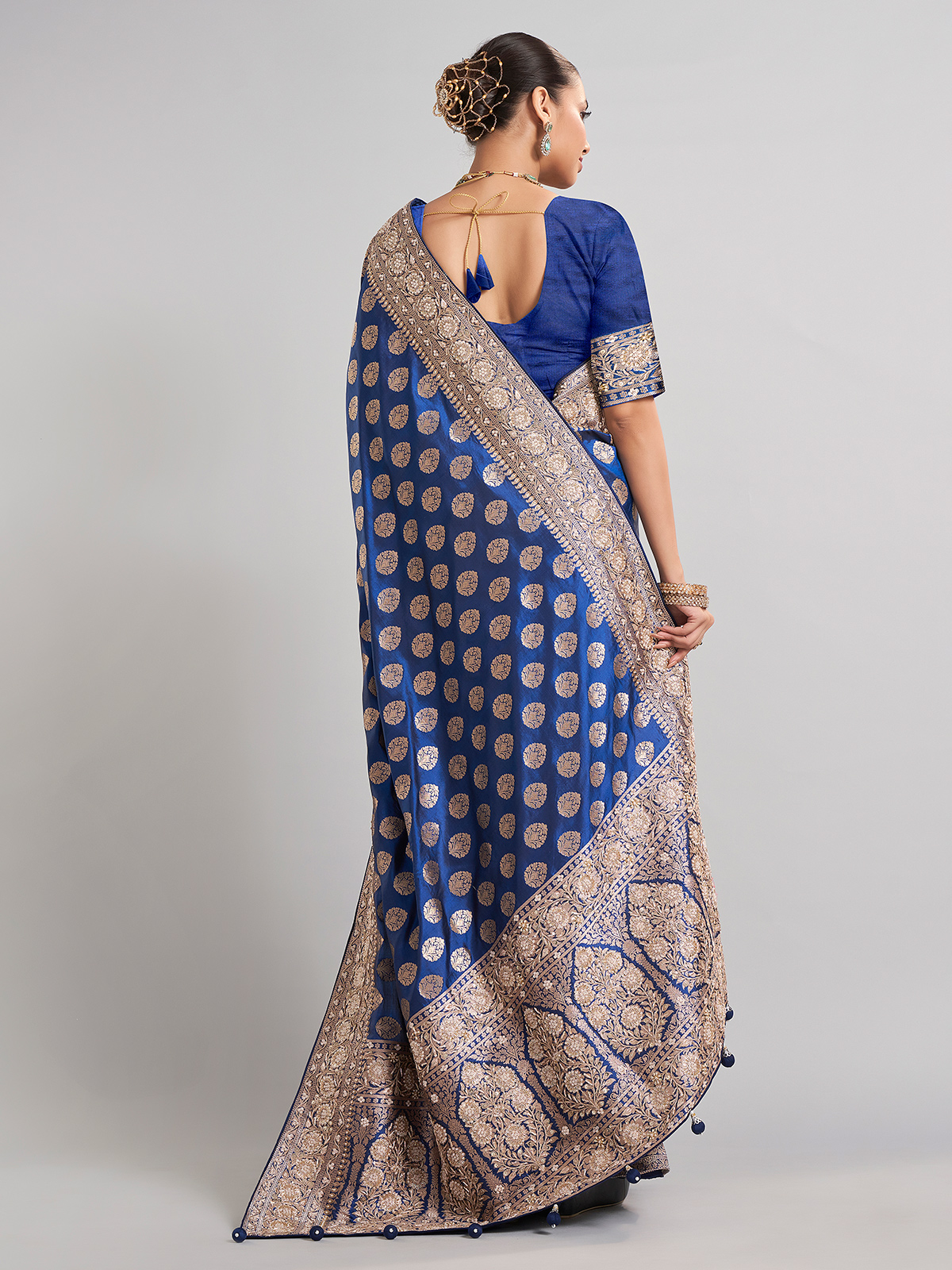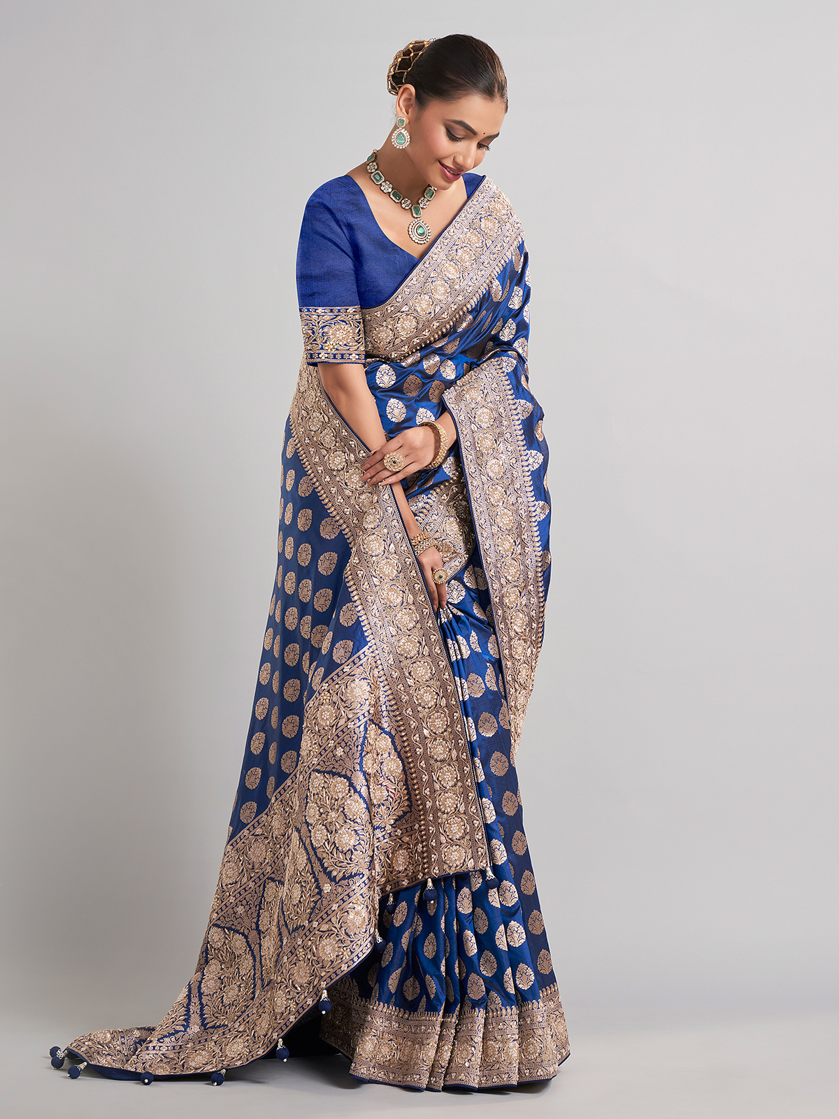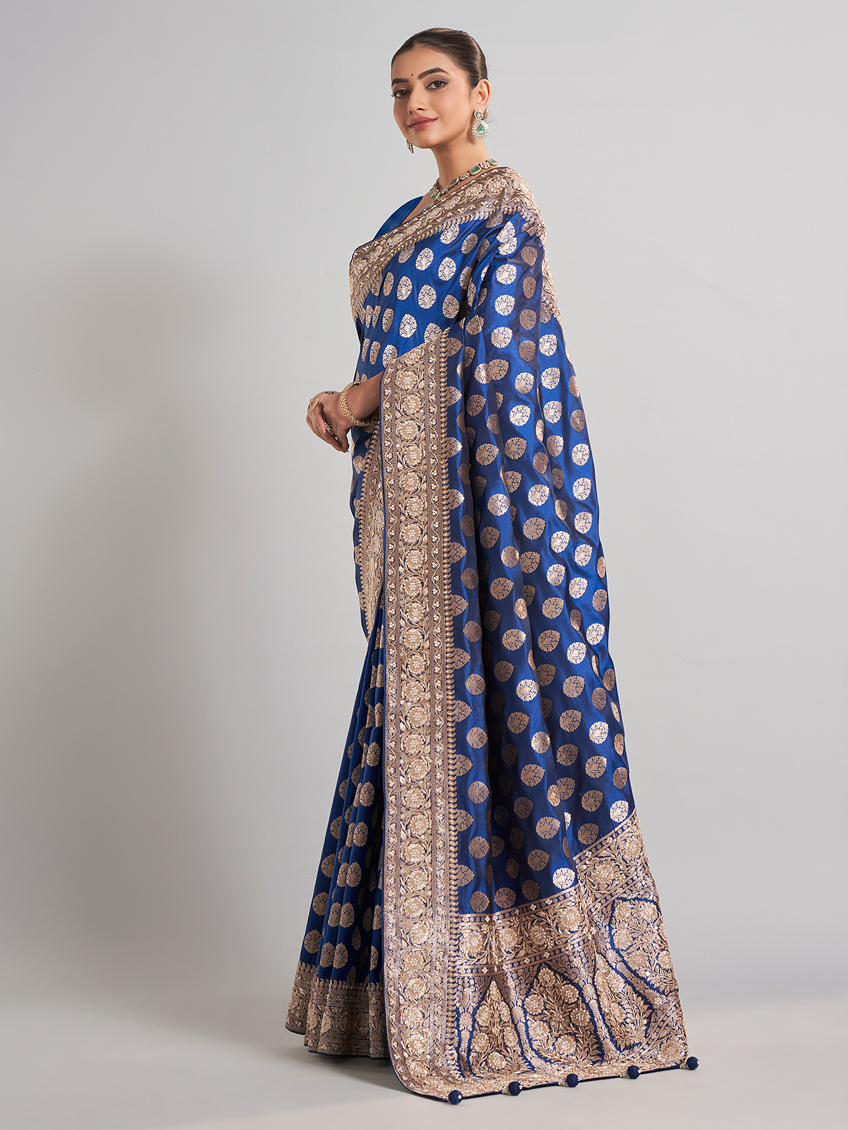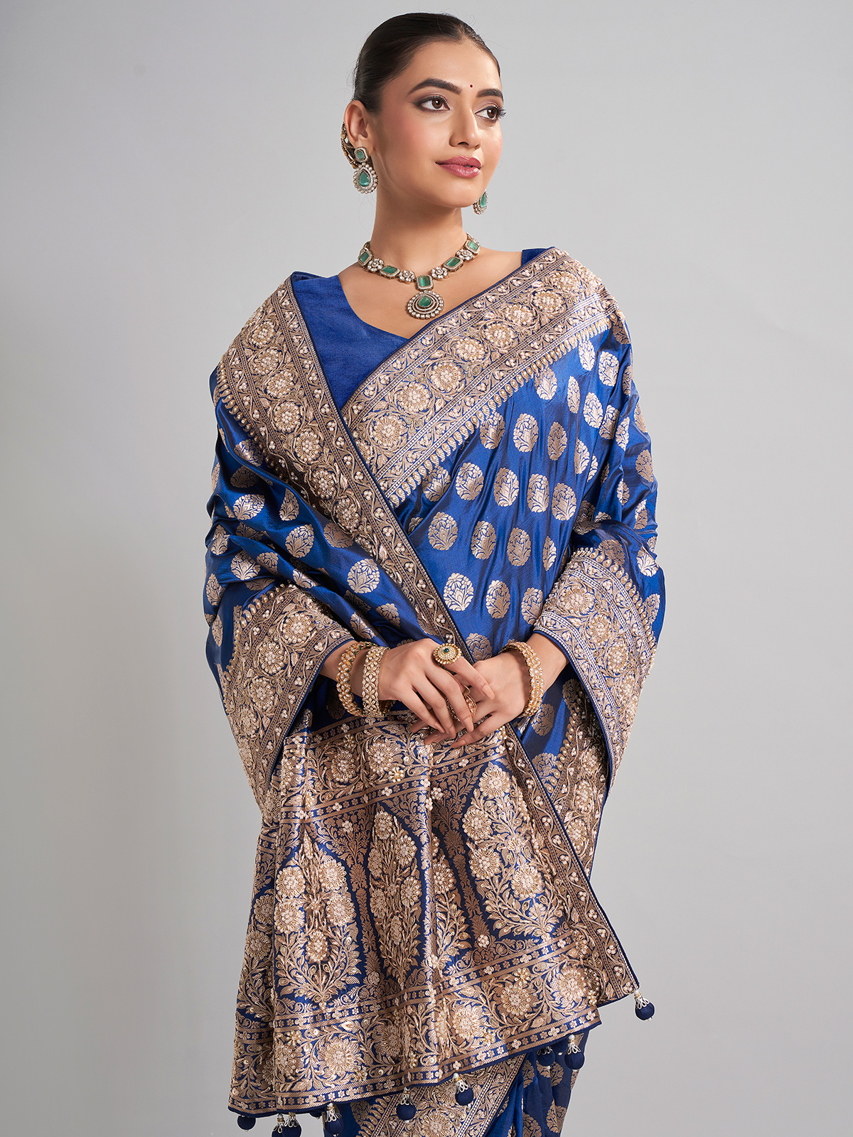 Blue Banarasi Silk Saree With Intricate Zari Weaving