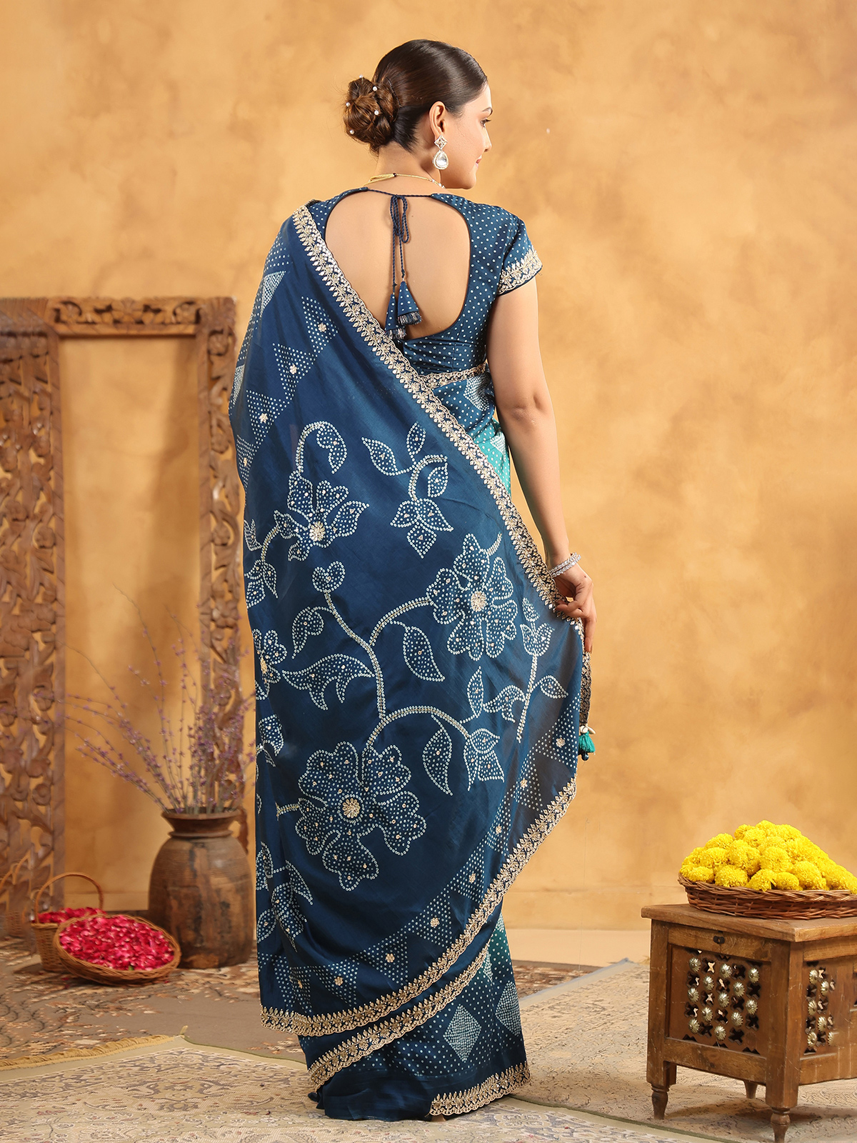 Blue Silk Saree With A Mix Of Resham And Sequins Work