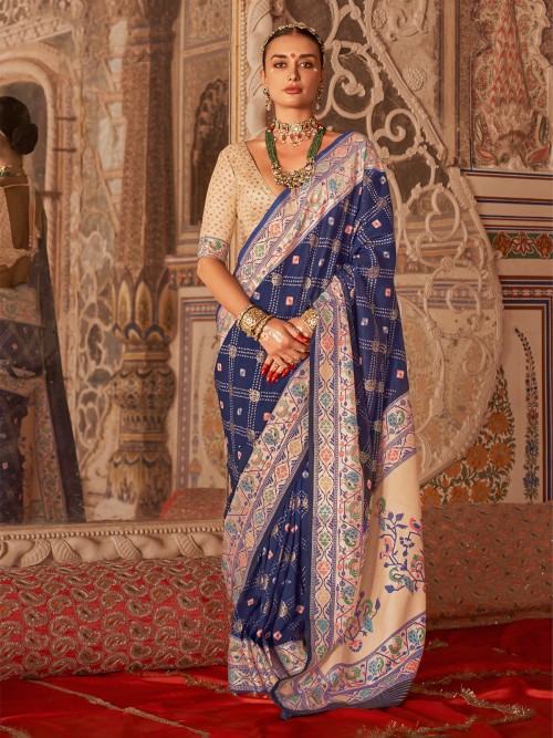 Blue Silk Saree With Digital And Zari Work