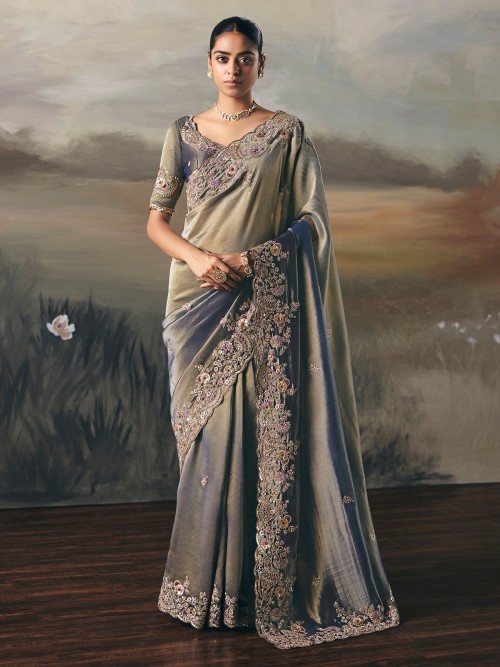 Blue Tissue Silk Celebration Saree