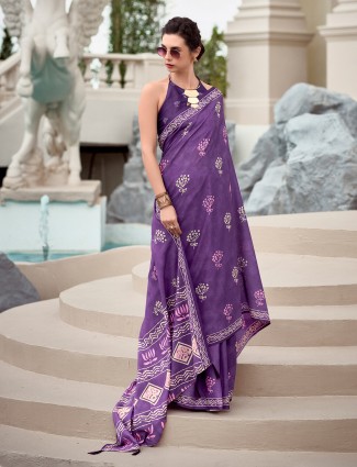 Introducing the brown khadi print saree, a stylish and versatile addition to your wardrobe. Crafted from lightweight soft linen silk fabric for easy draping. Comes with a blouse piece.