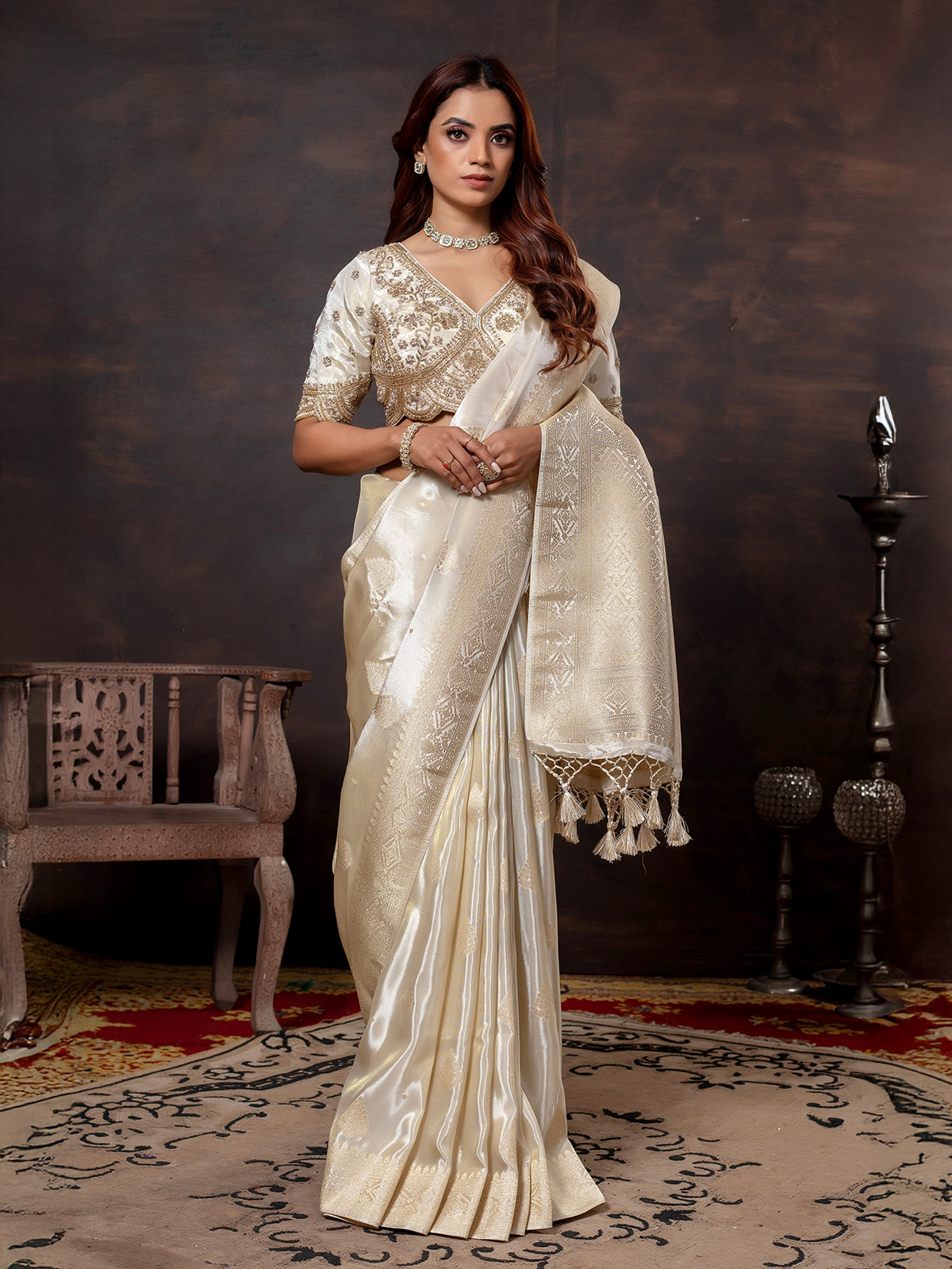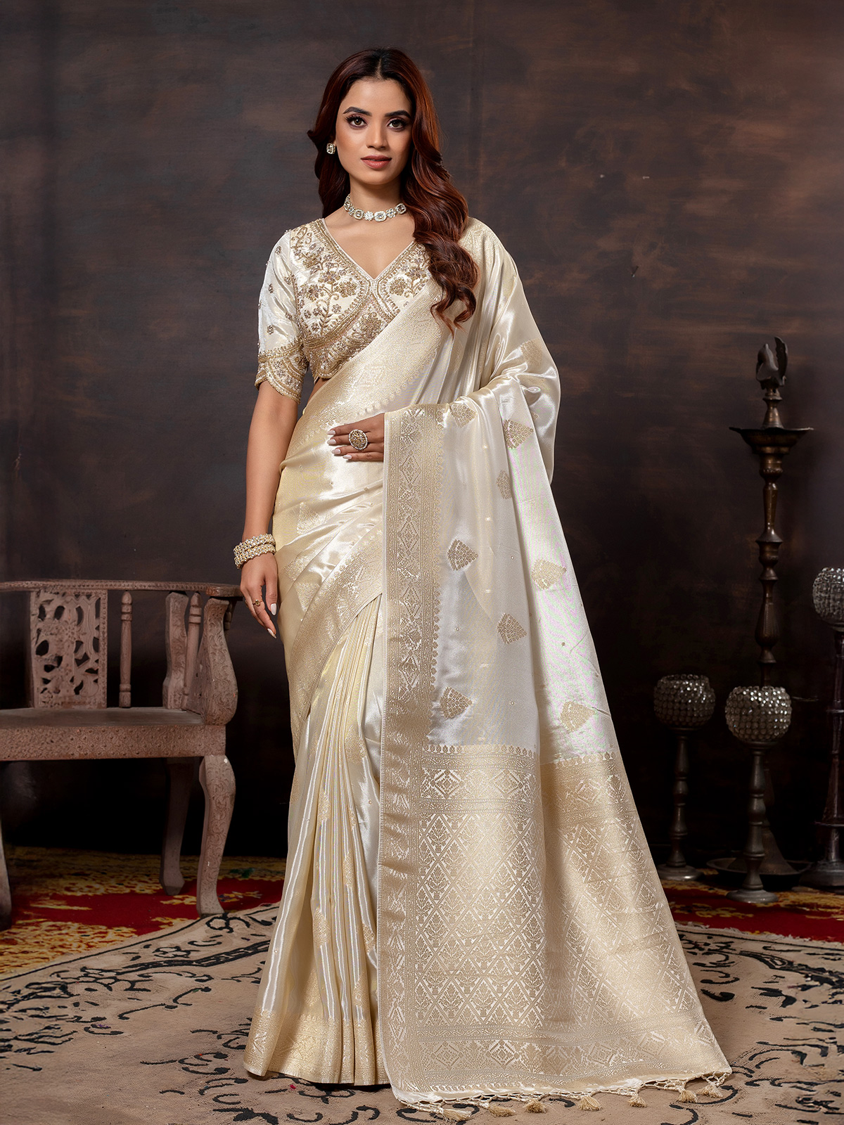 Charming Off White Dola Silk Saree