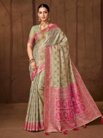 Charming Pista Green Silk Saree With Meena Work