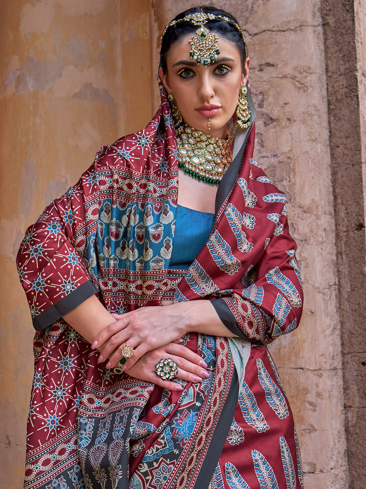 Add a touch of tradition with this maroon silk saree, styled with a rich texture and timeless appeal. A great choice for functions and festive wear. Includes an unstitched blouse for flexible fitting.