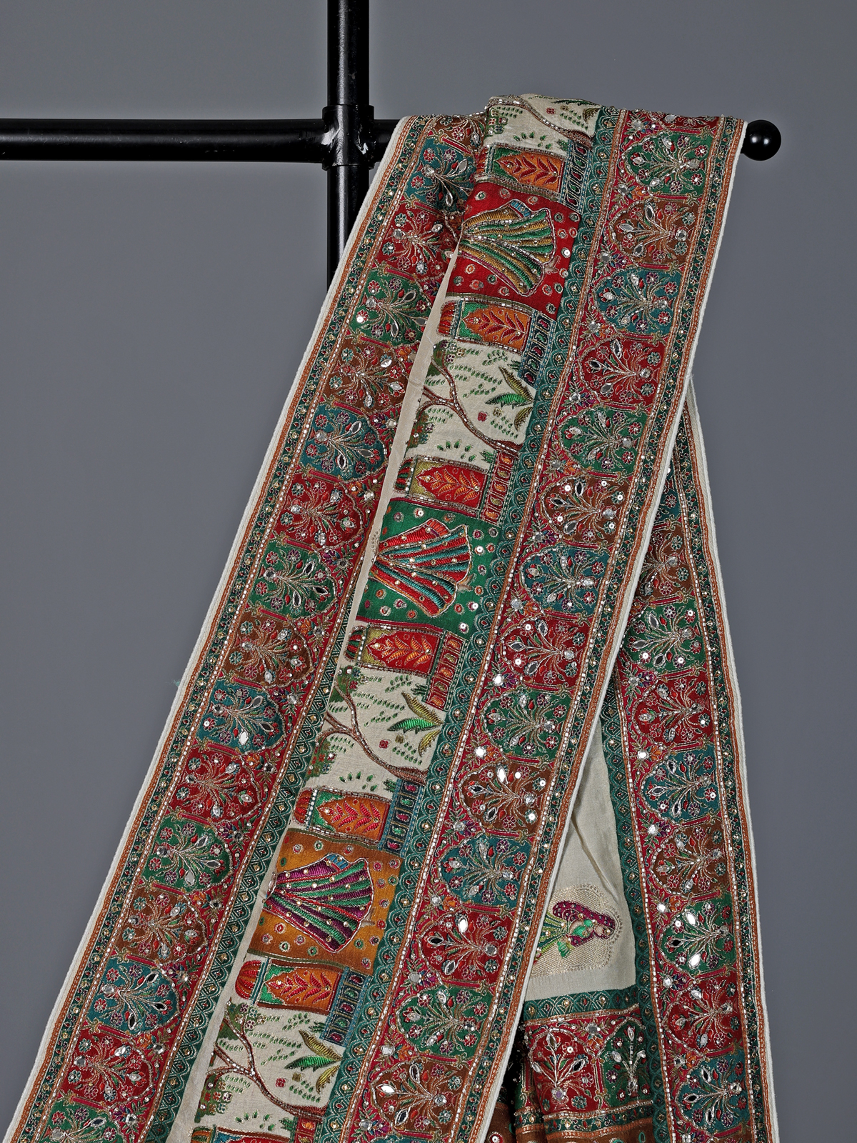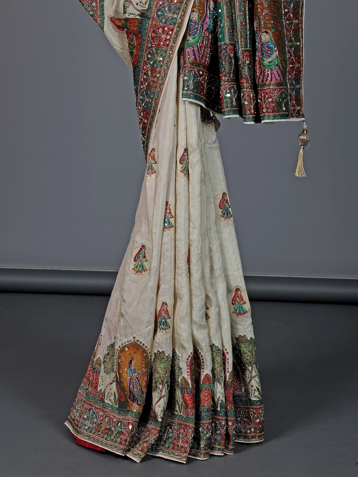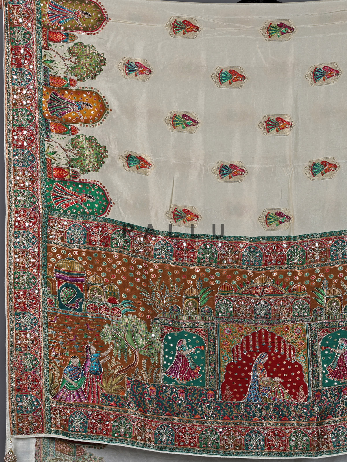 Cream Art Silk Zardosi And Mirror Work Festive Saree