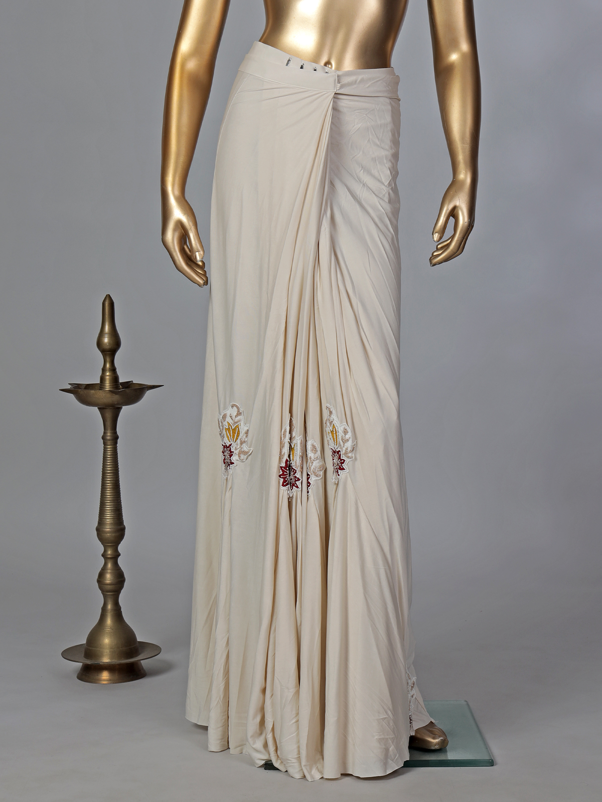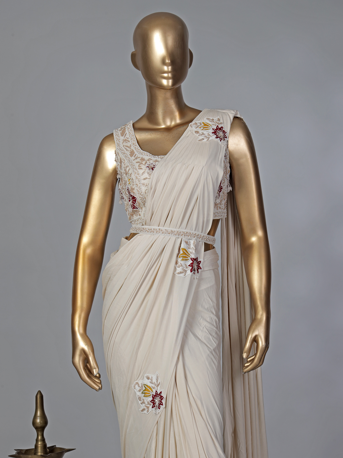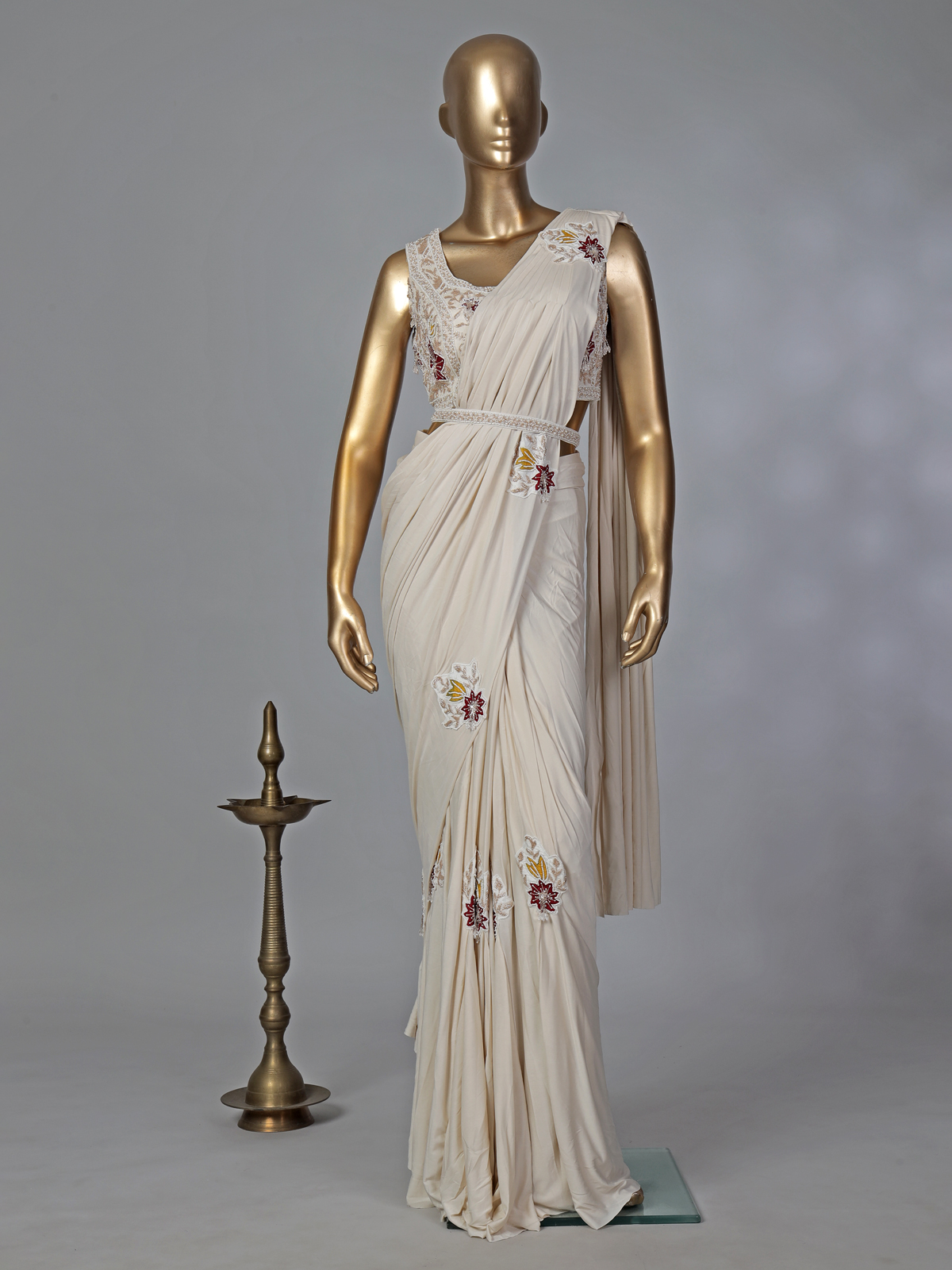 Cream Lycra Ready To Wear Saree For Reception Wear