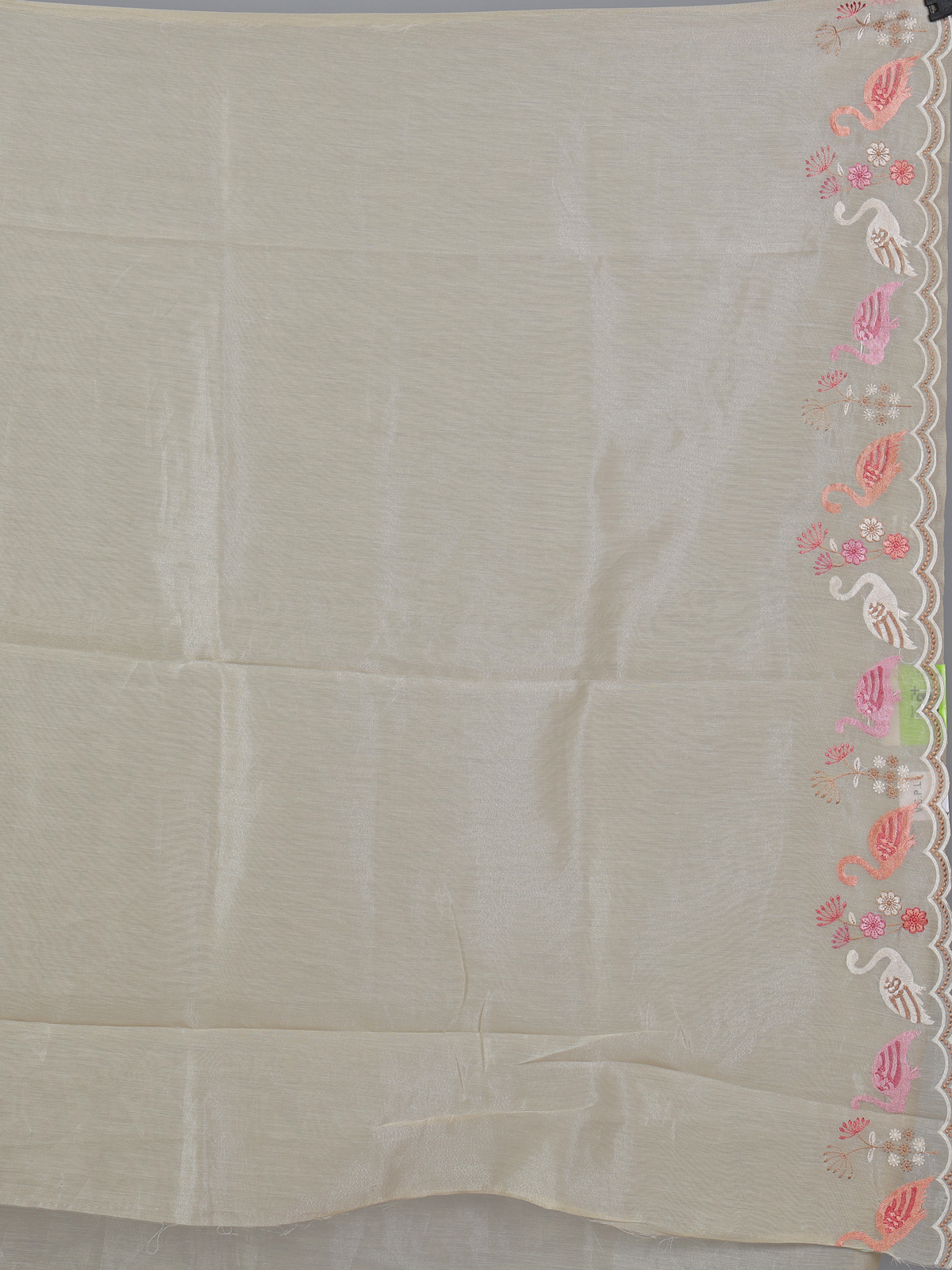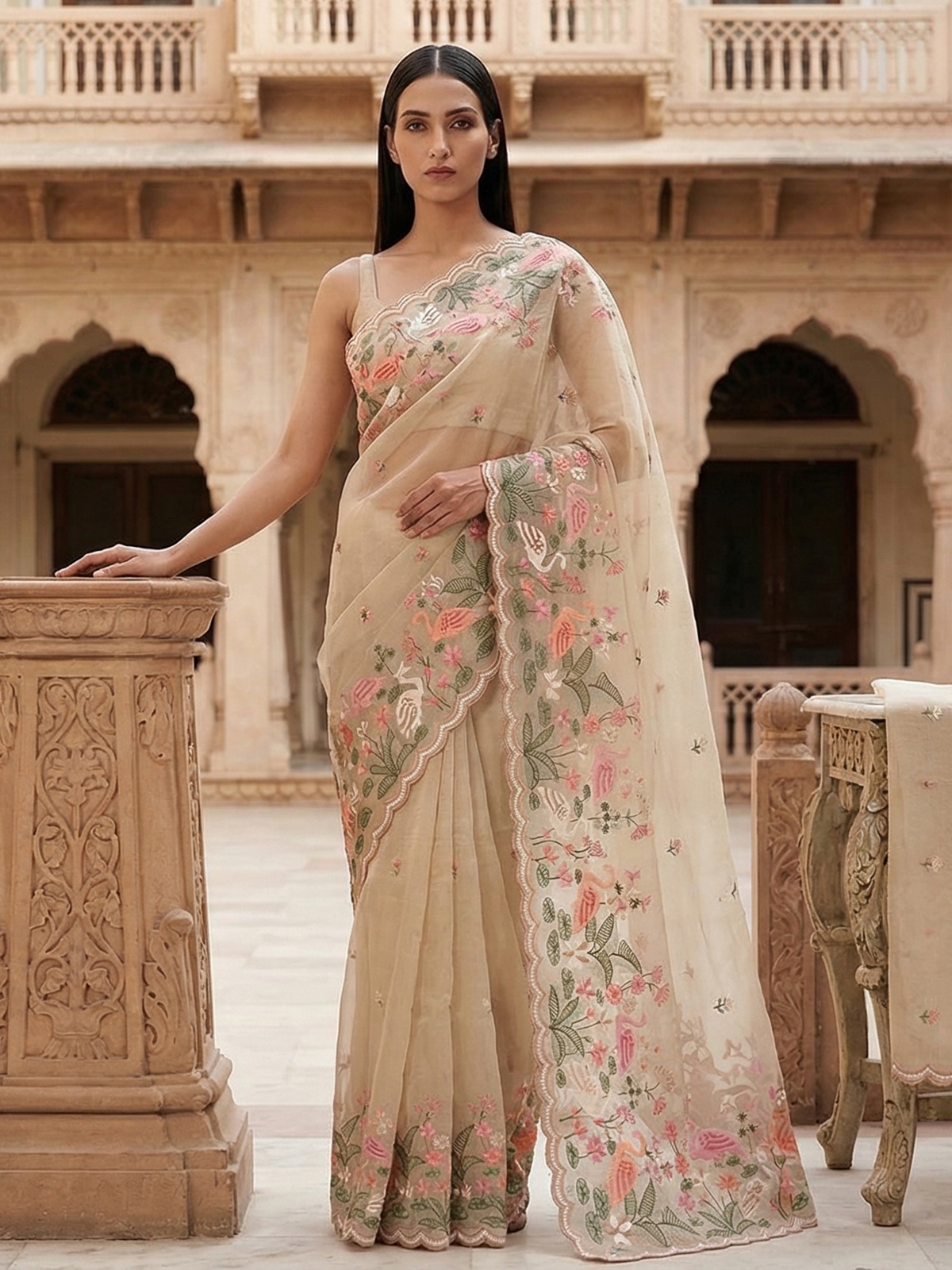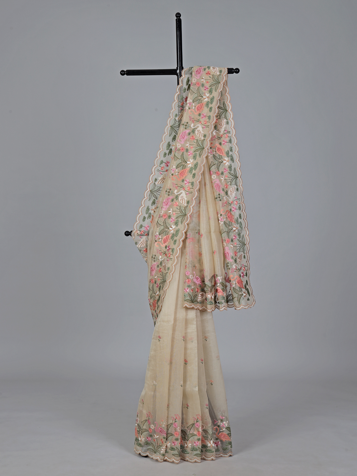 Cream Semi Organza Embroidered Festive Saree Timeless Charm