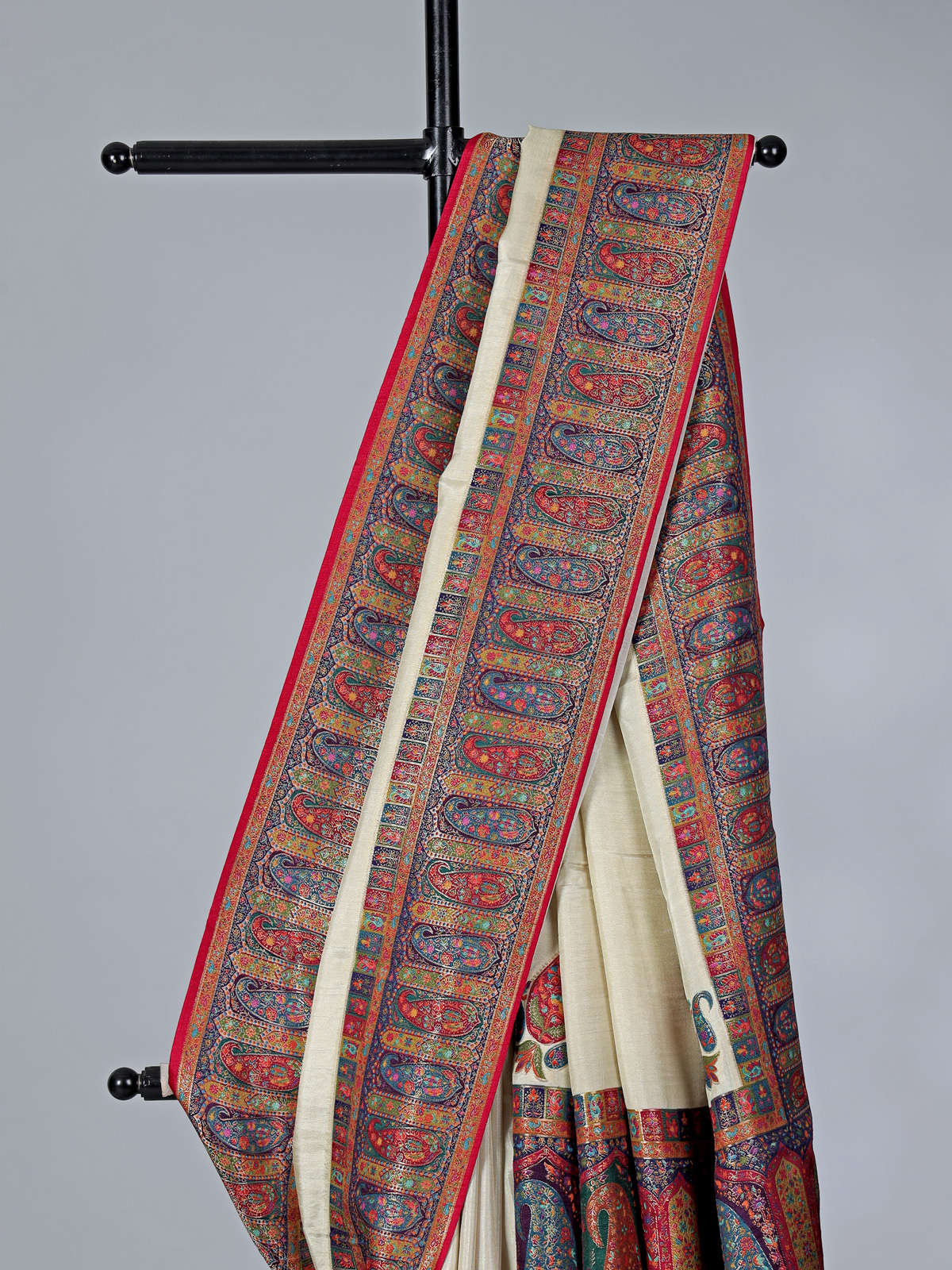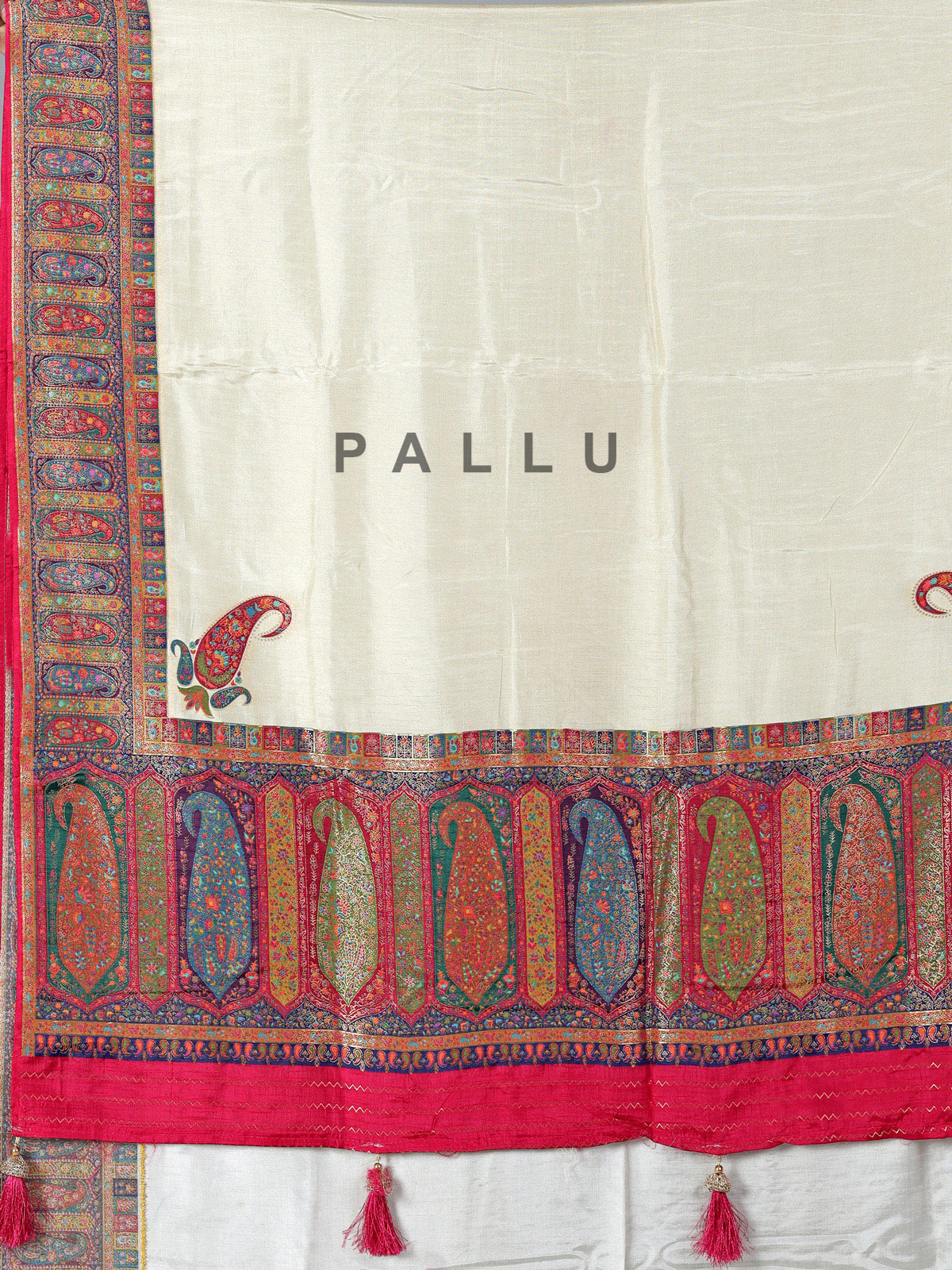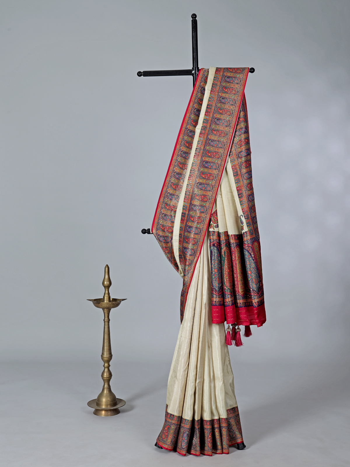Cream Semi Pashmina Silk Saree With Elegant Border
