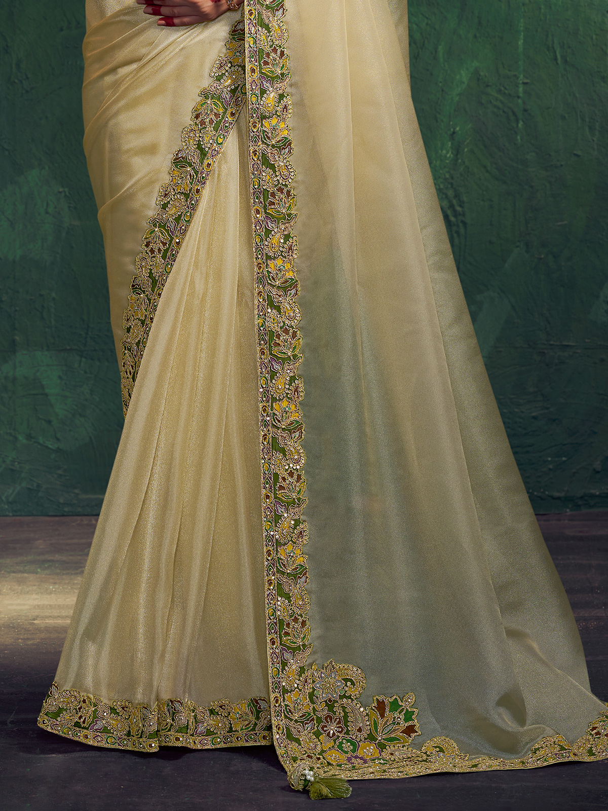 Cream Shimmer Tissue Silk Designer Saree