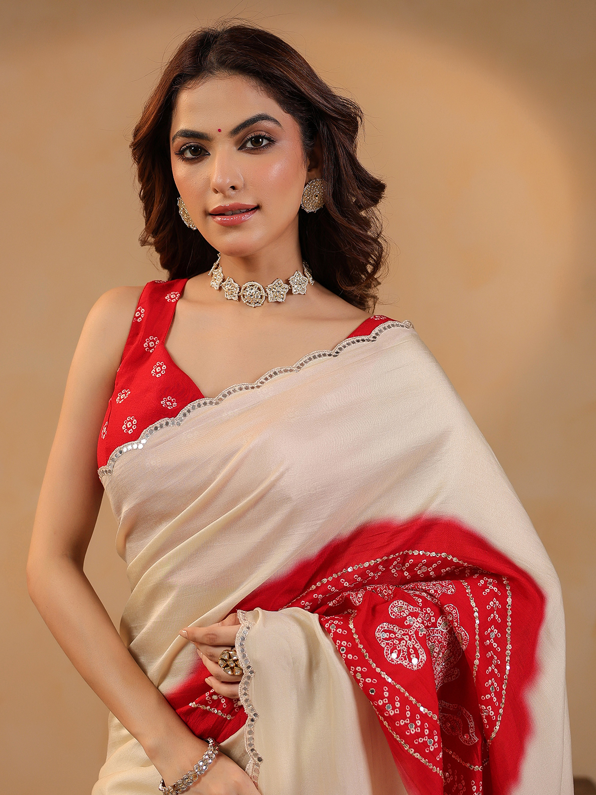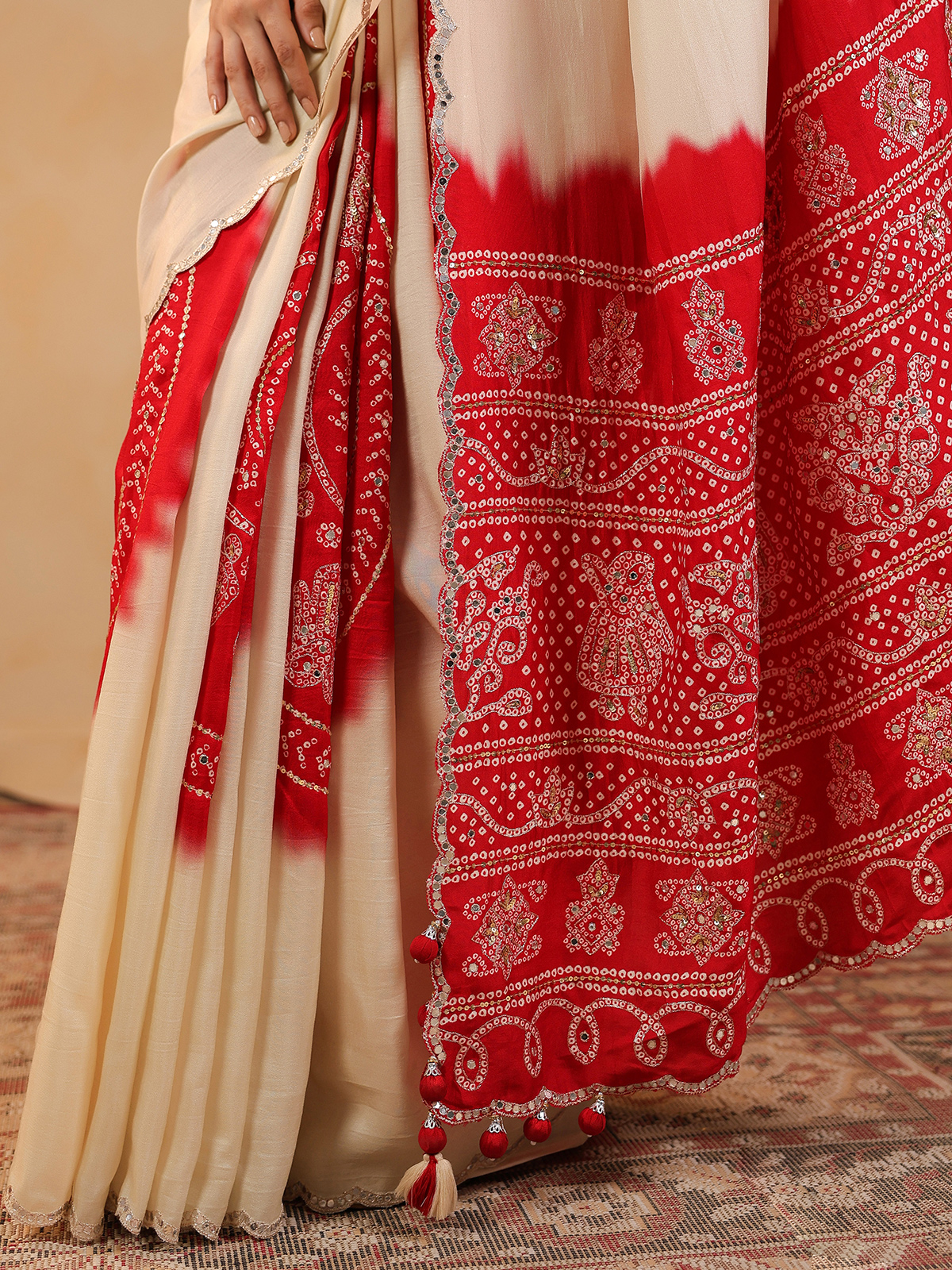 Cream Silk Saree Showcasing Delicate Aabla Accents