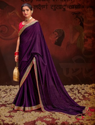 Dark Purple Festive Wear Silk Saree