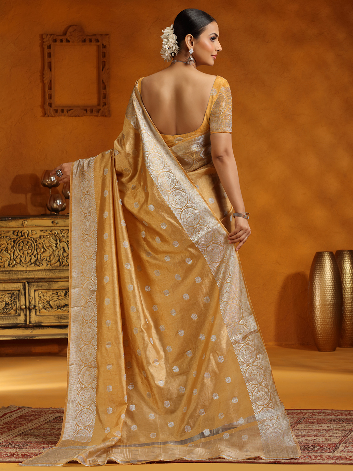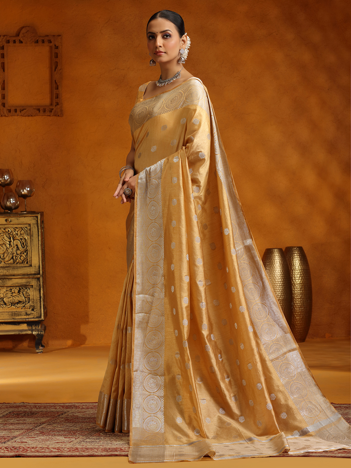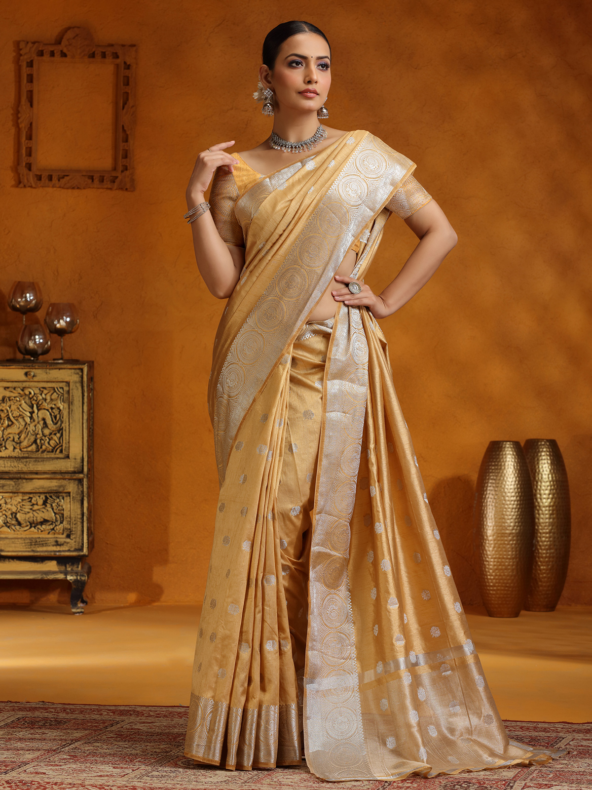 Traditional elegance is redefined in this mint green silk saree with zari weaving. Ideal for festive wear. Includes an unstitched blouse.
