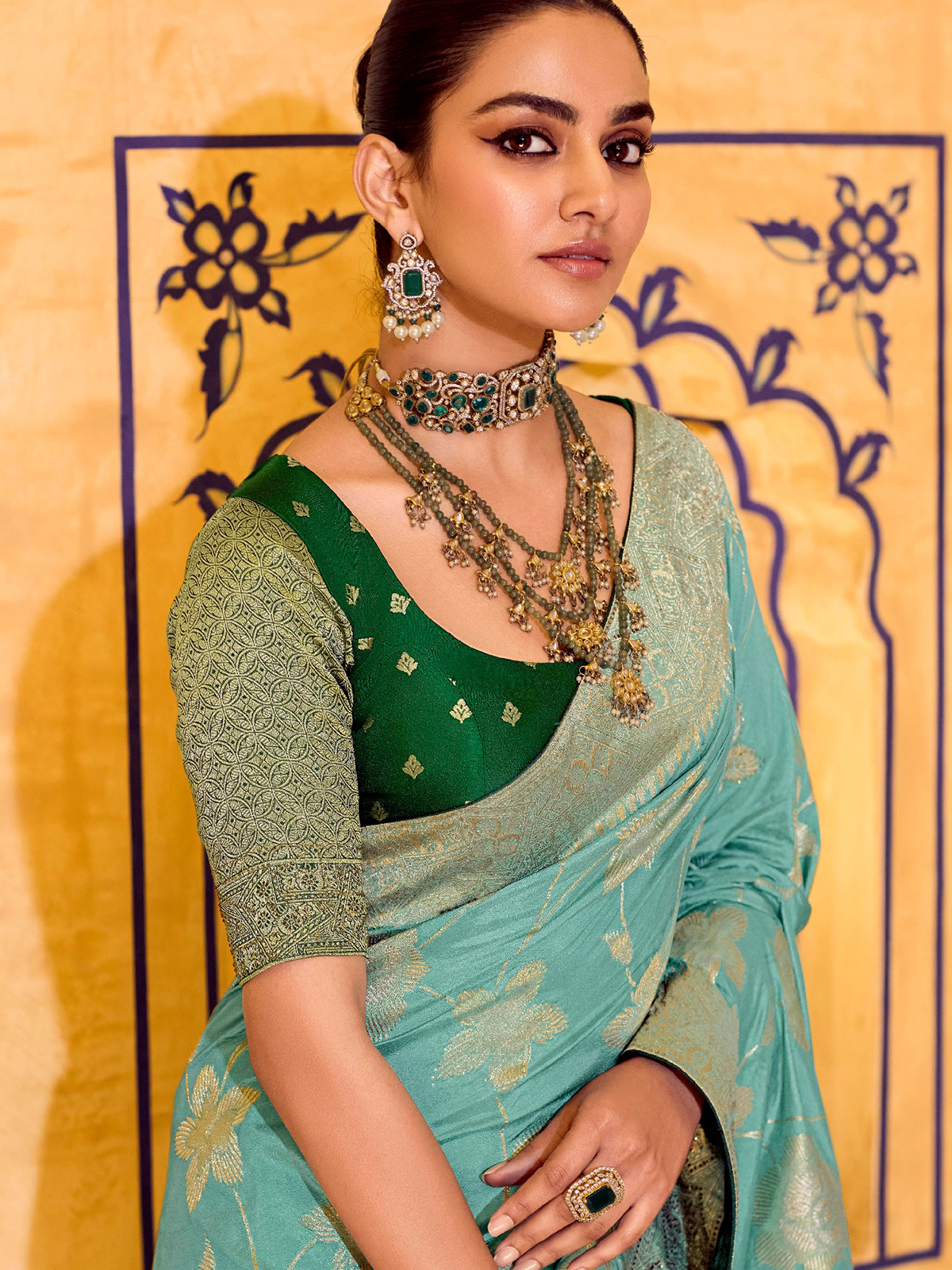 This elegant blue banarasi crepe silk saree showcases rich zari detailing that enhances its traditional charm. Suitable for weddings, festive gatherings, and puja ceremonies, it offers a graceful drape and luxurious texture. The unstitched blouse provides versatility for personalized styling.