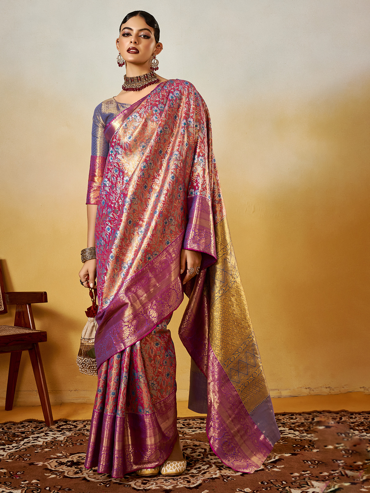Elegant Zari Woven Multitone Silk Saree Design