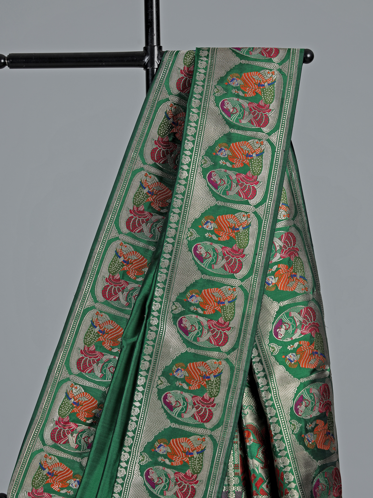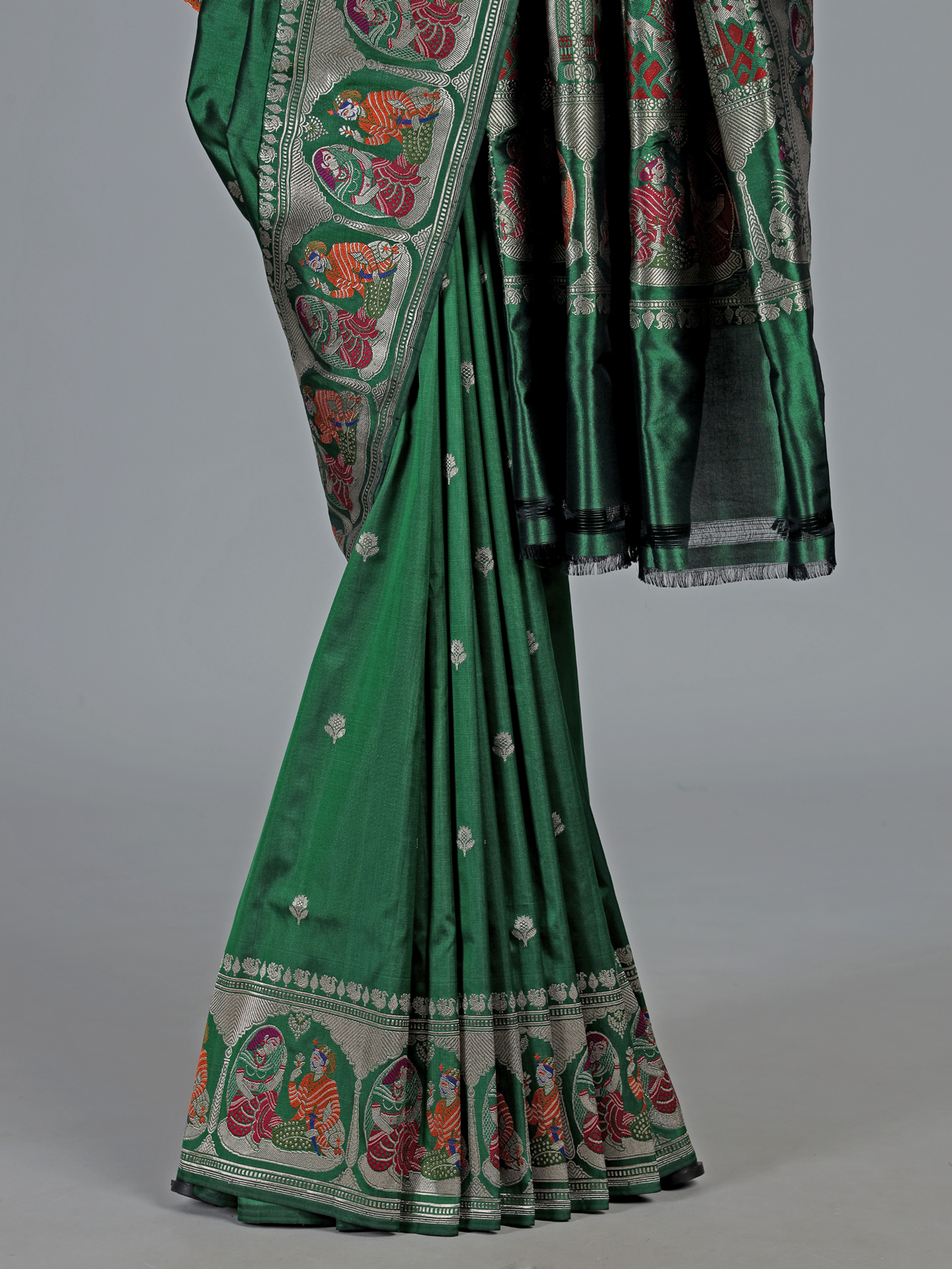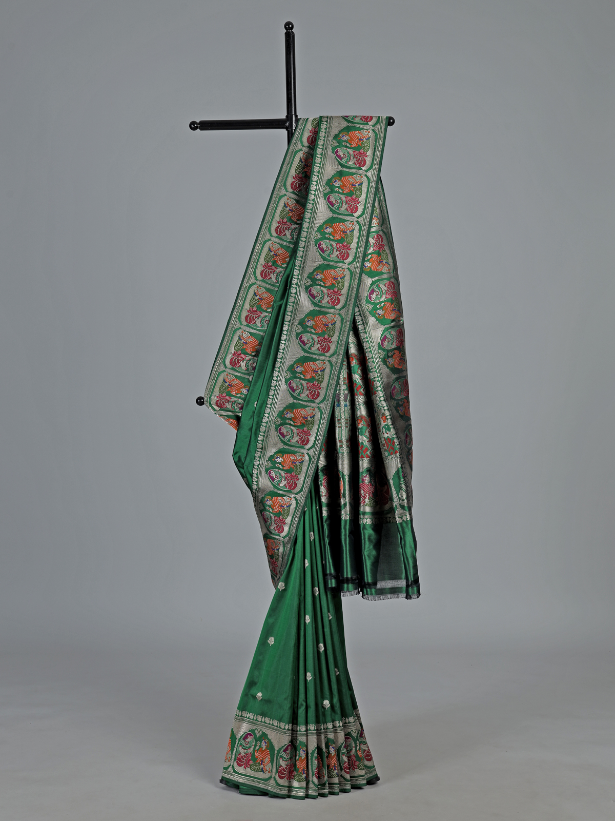 Emerald Green Banarasi Silk Saree With Meenakari Border