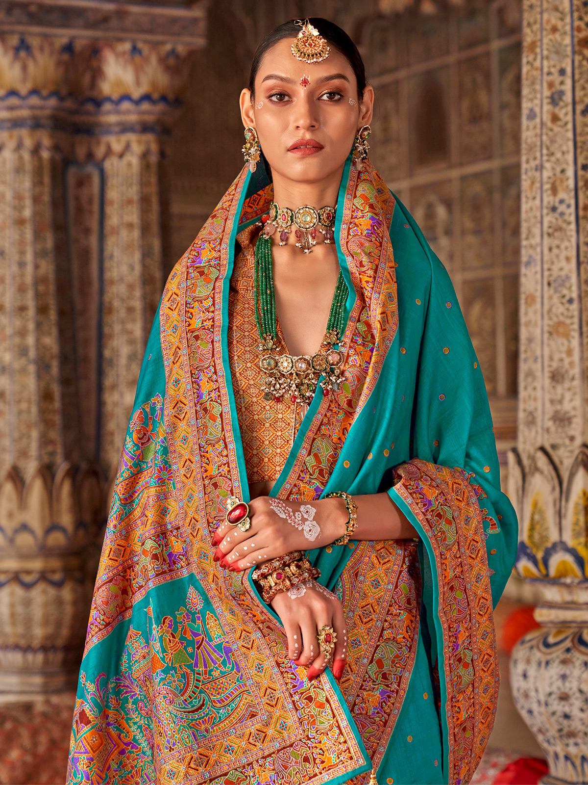 Festive Aqua Silk Saree Showcasing Intricate Print Work