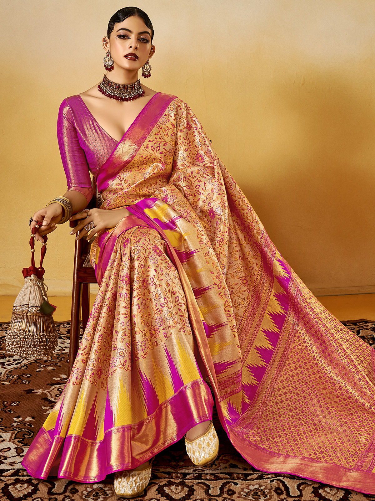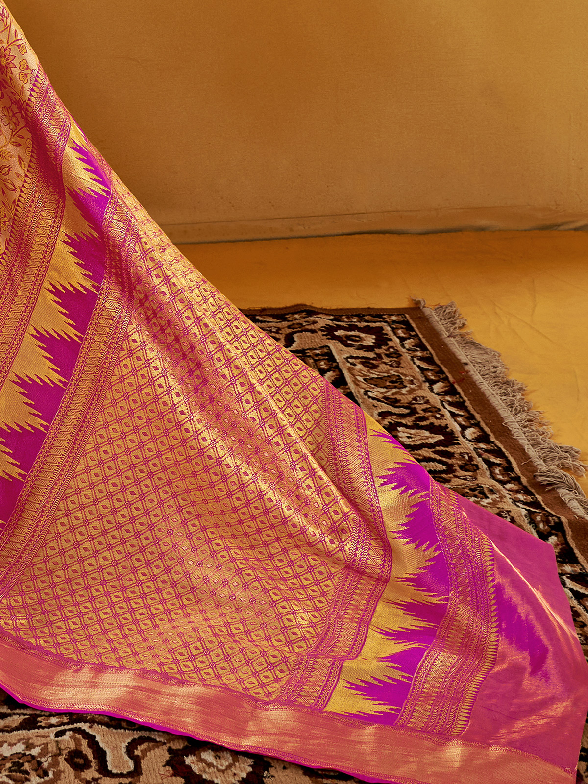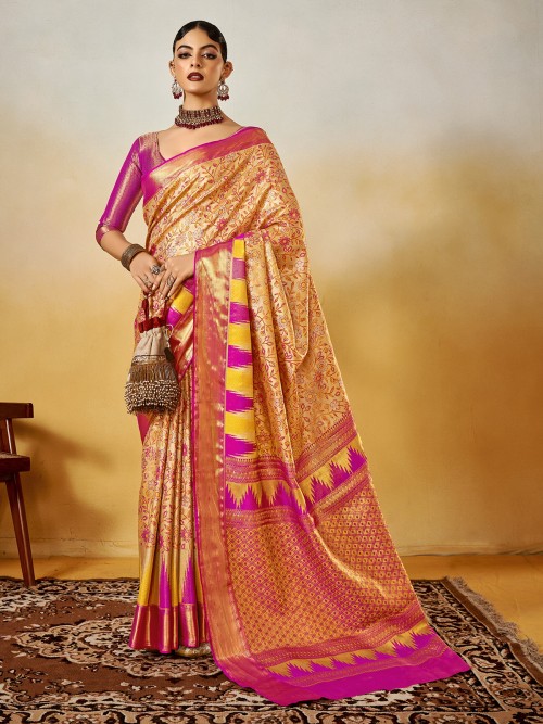 Festive Pink Silk Saree With Ornate Zari Weaving