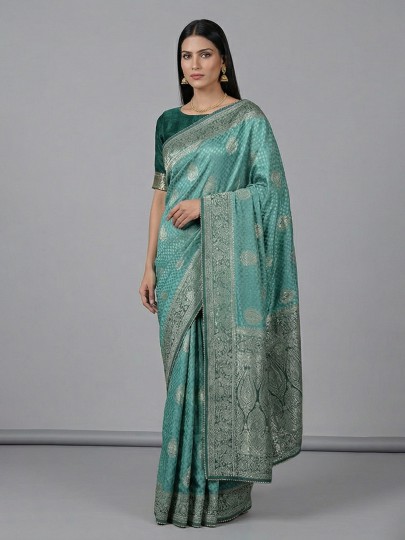 Firozi Blue Dola Silk Shaded Festive Designer Saree