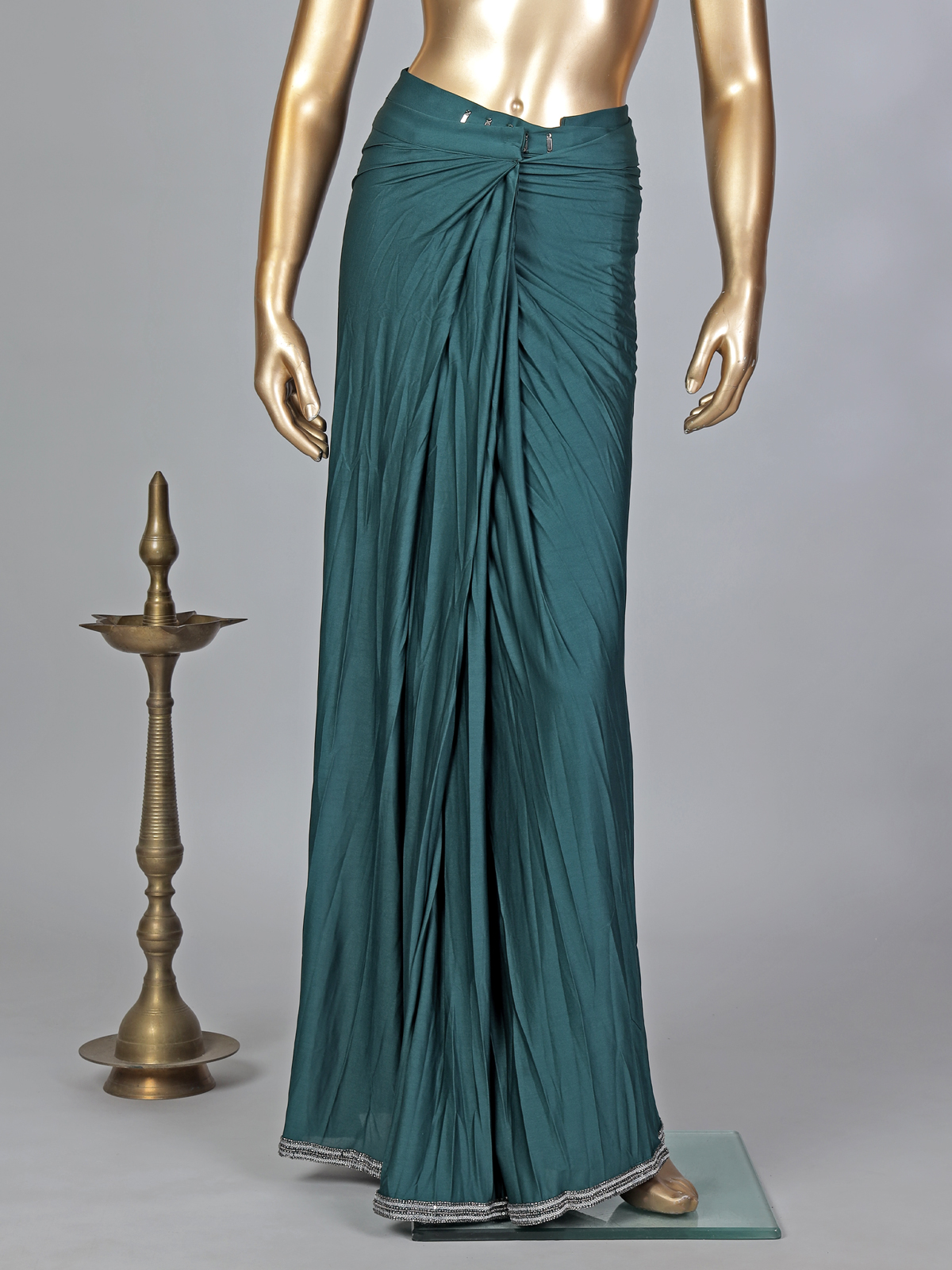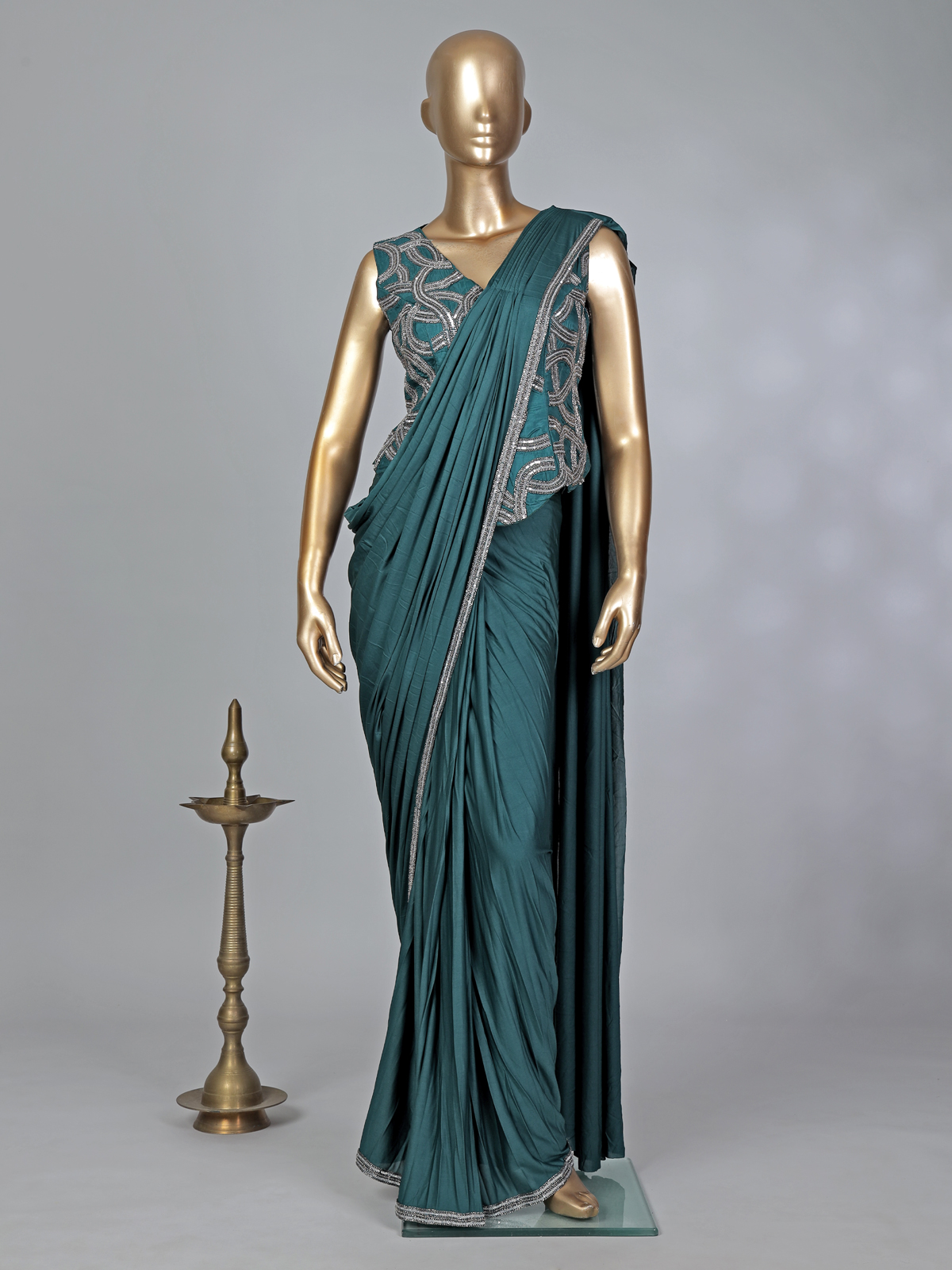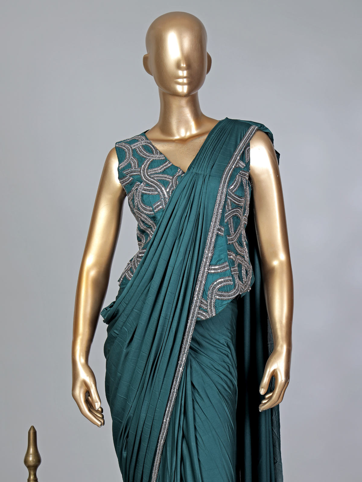 Gorgeous Green Lycra Ready To Wear Party Saree