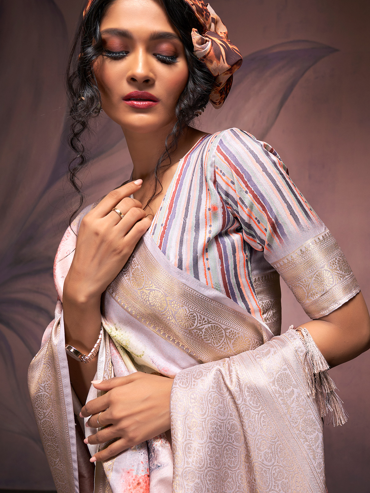 Graceful Lilac Toned Zari Silk Blouse