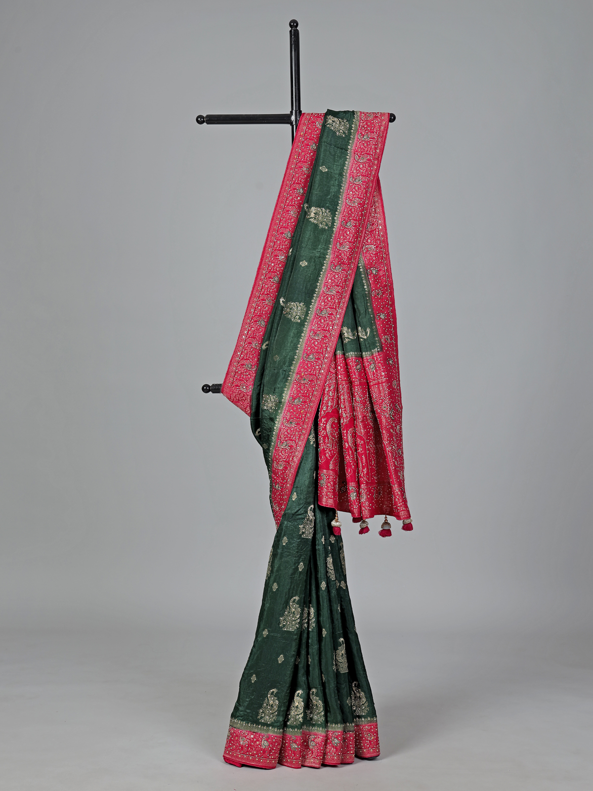 Green Dola Silk Embellished Festive Wear Saree