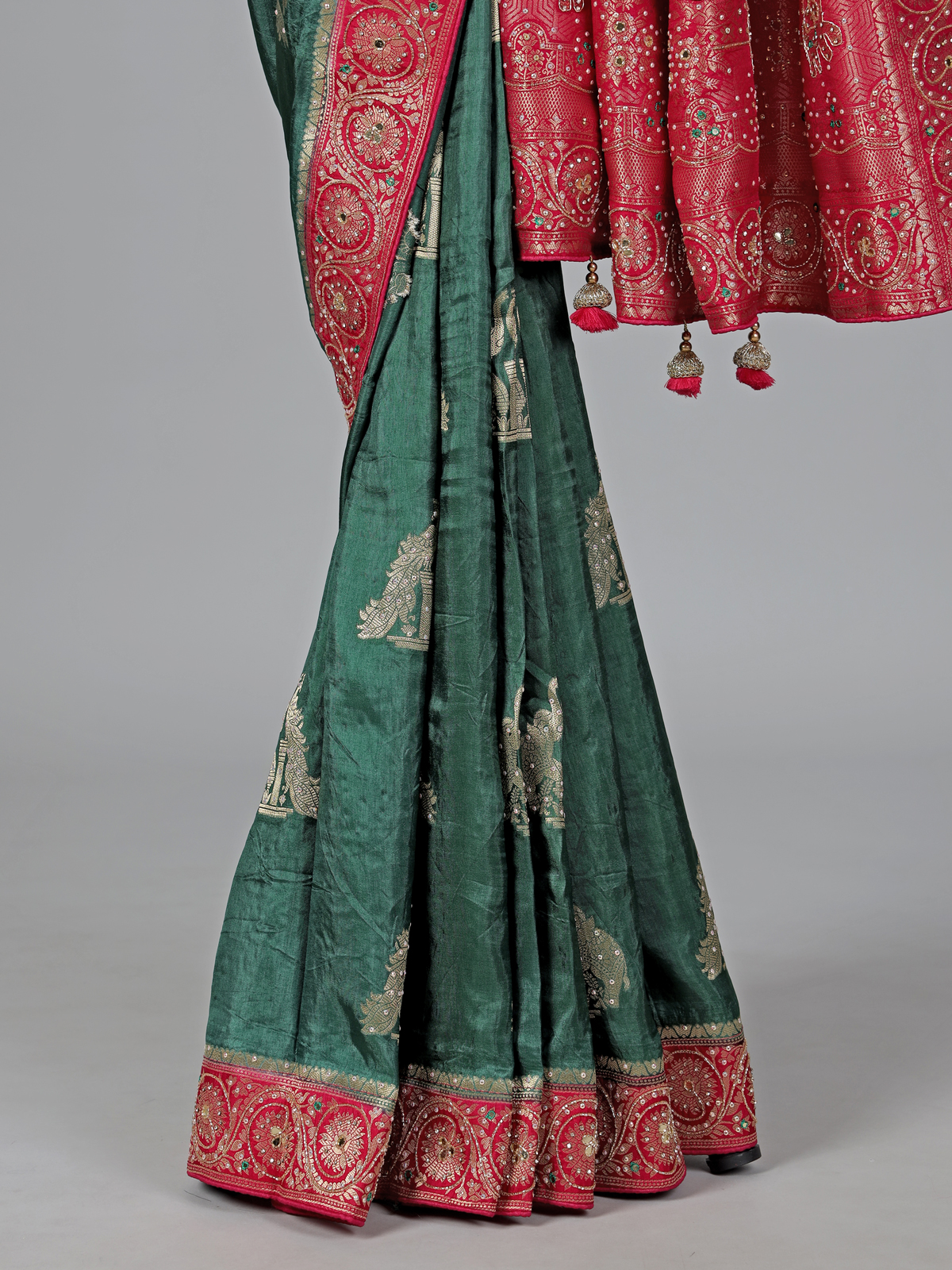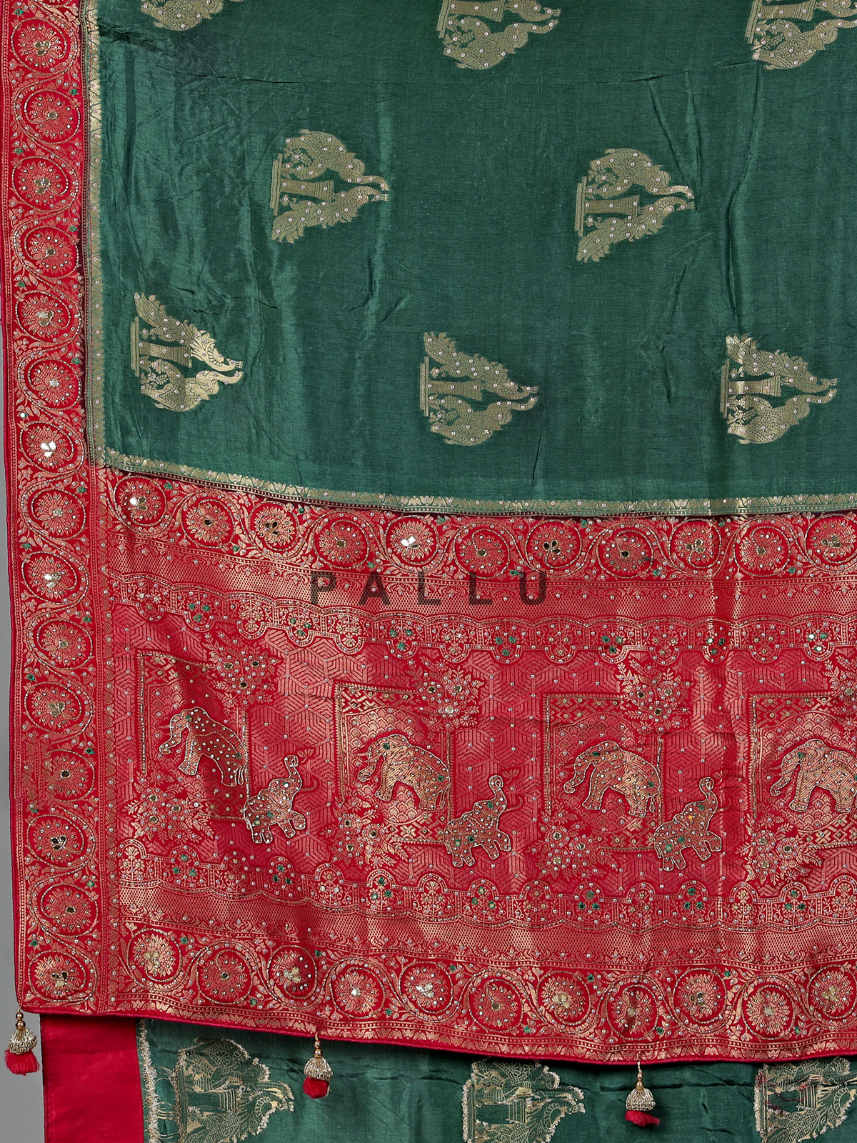 Green Dola Silk Heavy Embellished Festive Wear Saree