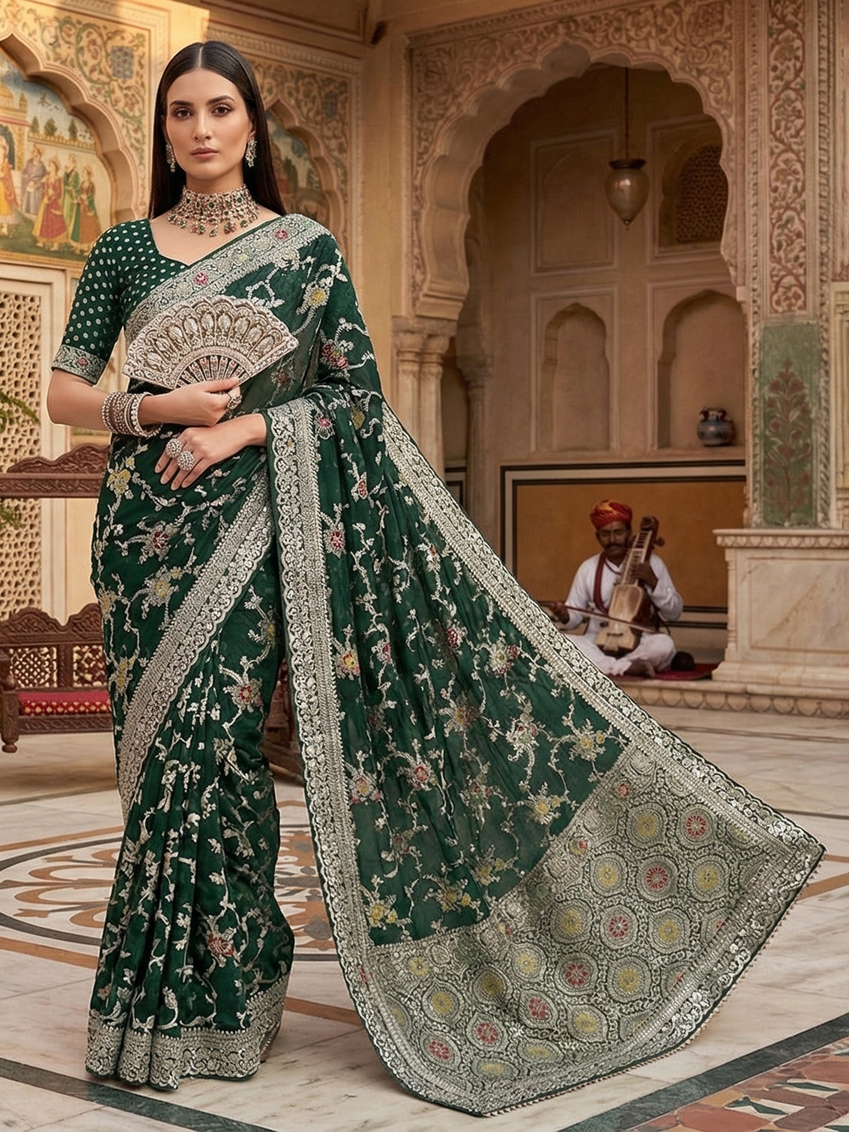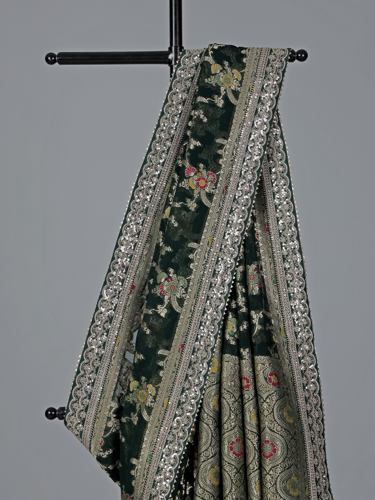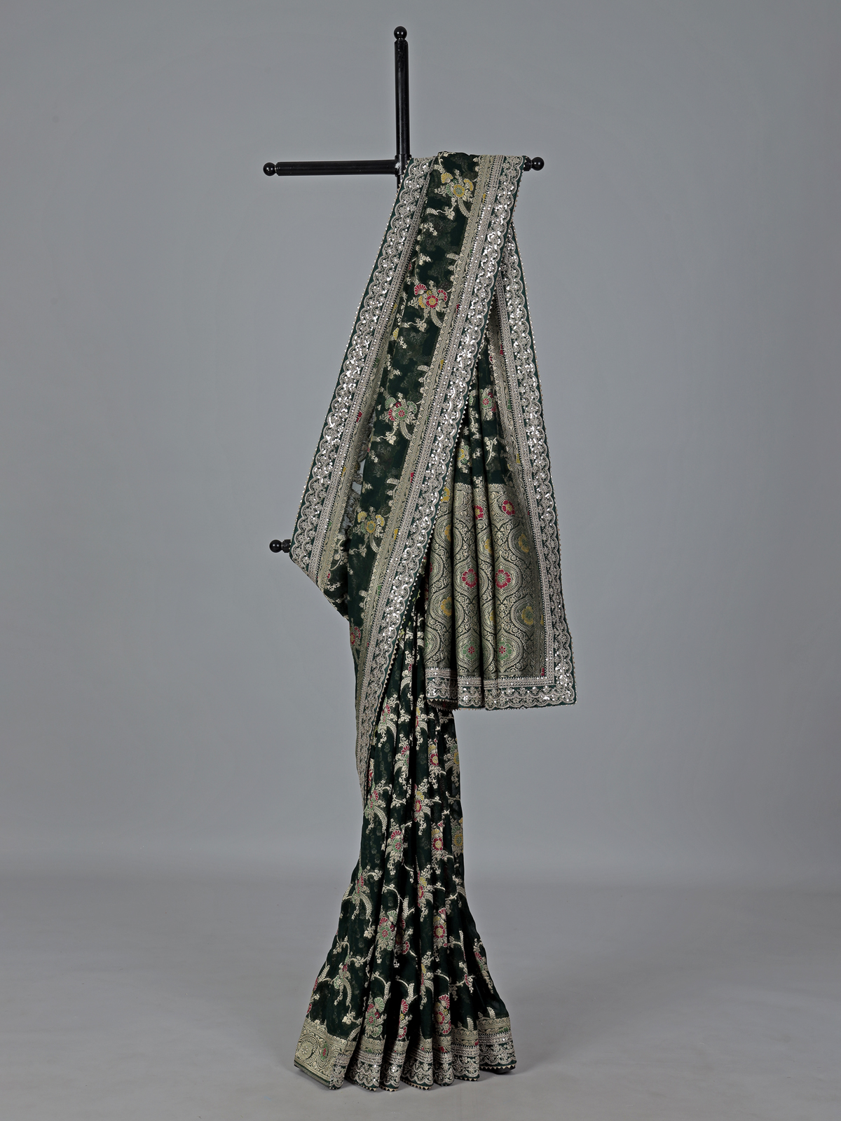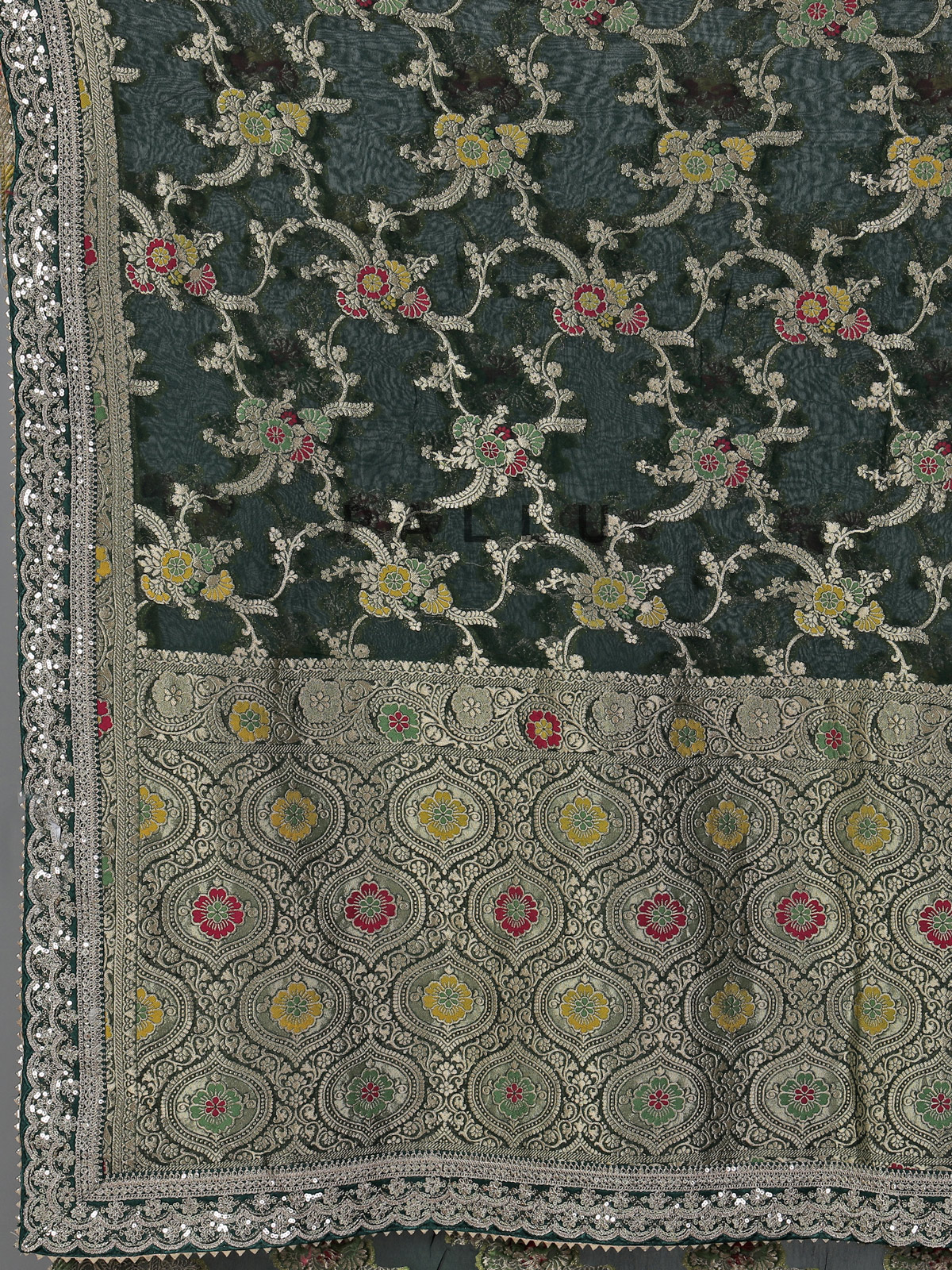 Green Semi Georgette Gota And Resham Festive Saree Radiance