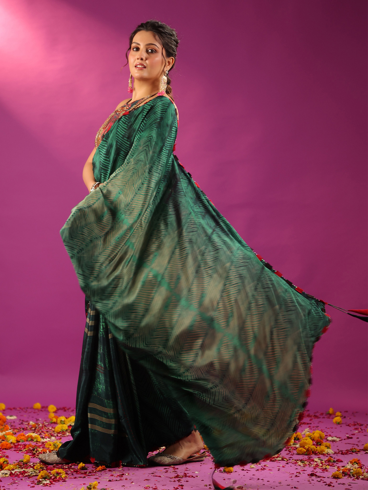 Green Threaded Glory In Cruss Tussar Silk Saree