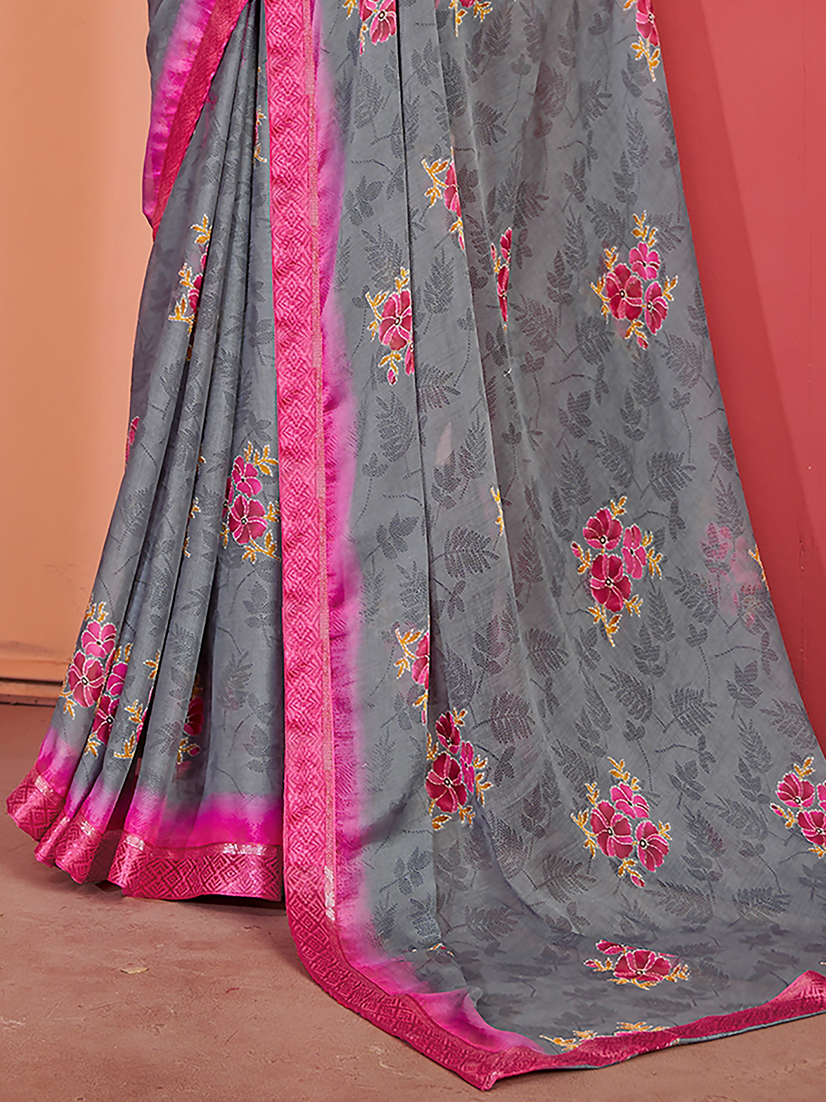 Grey Shaded Floral Lace Georgette Saree