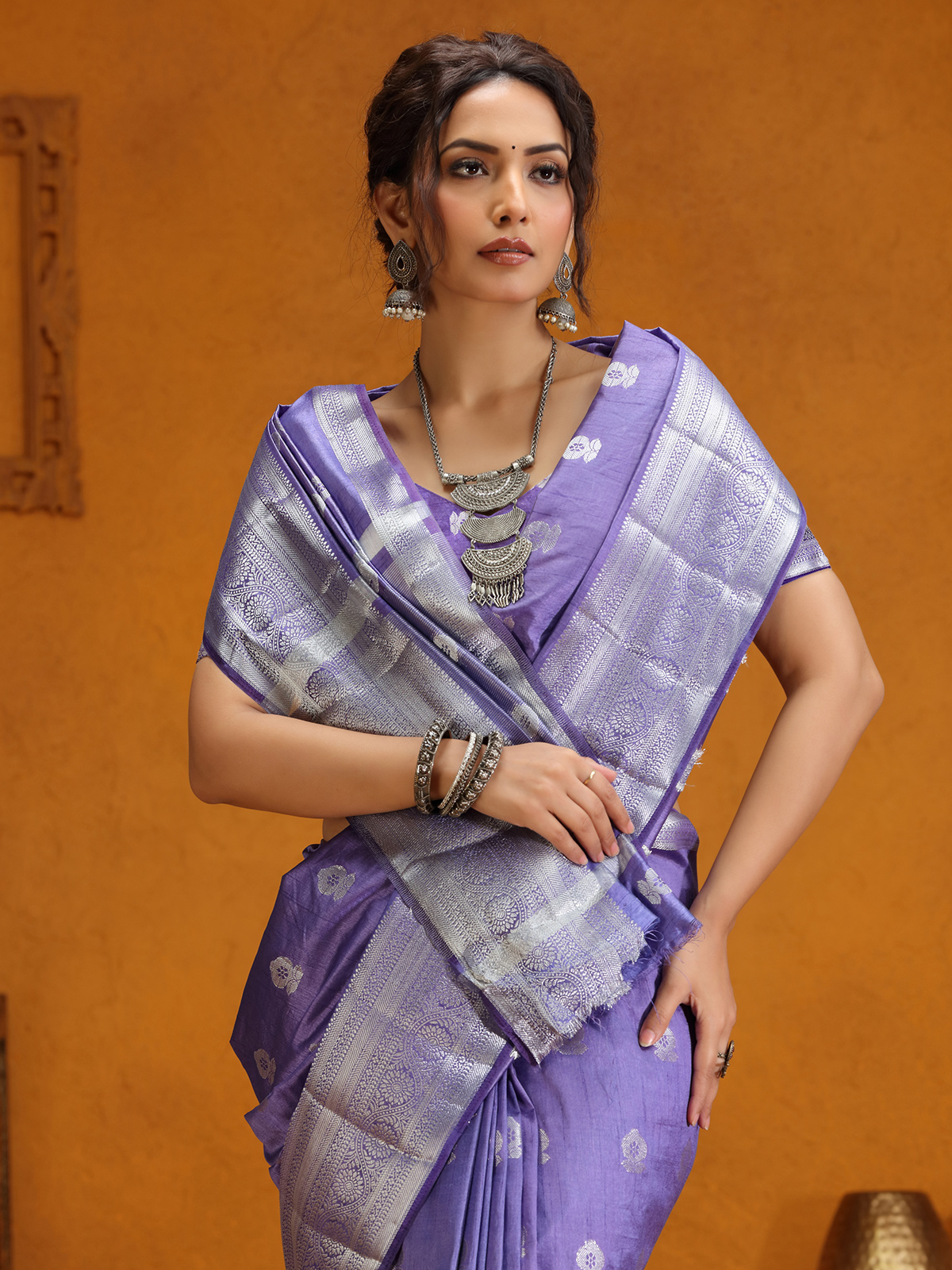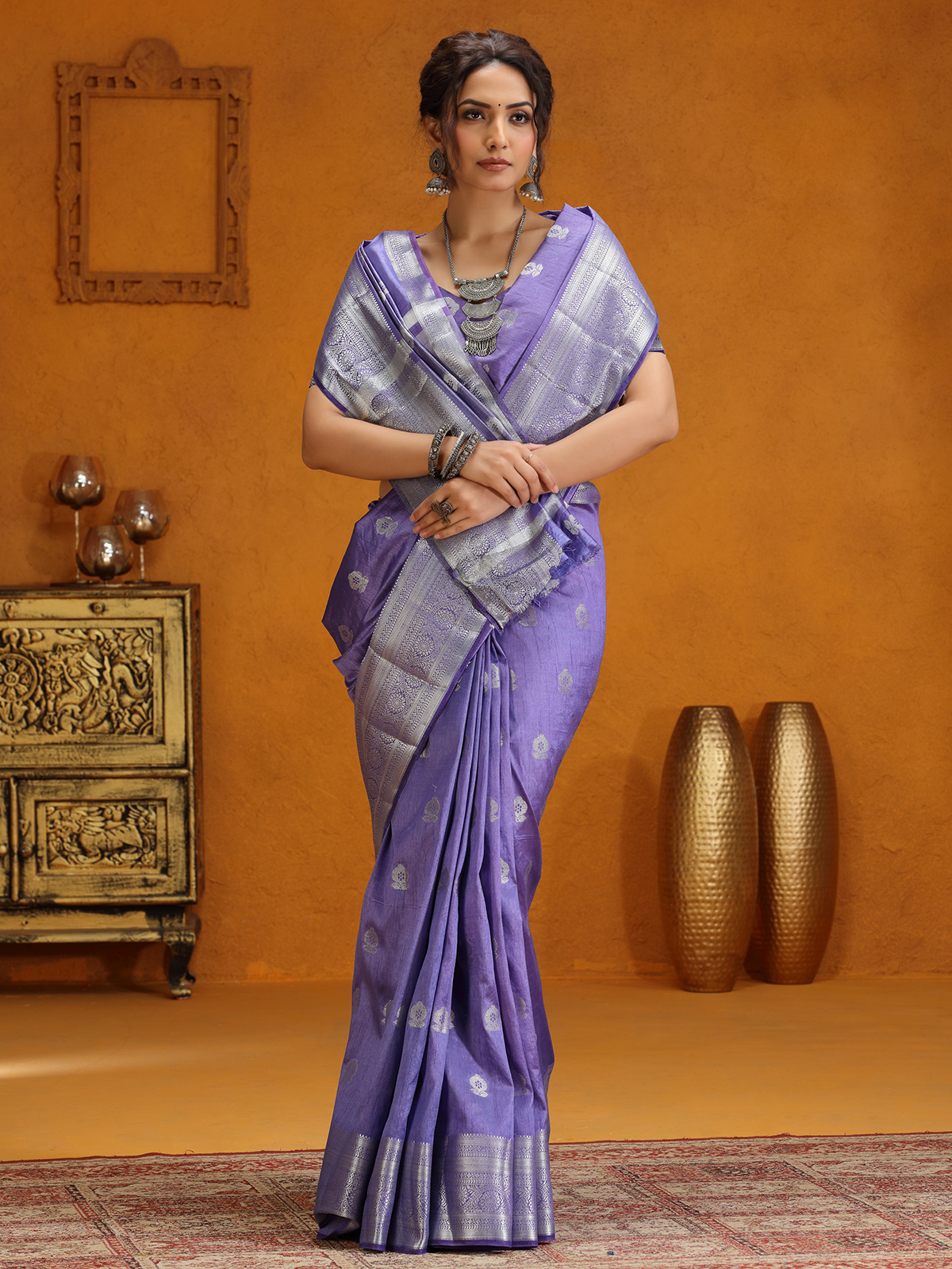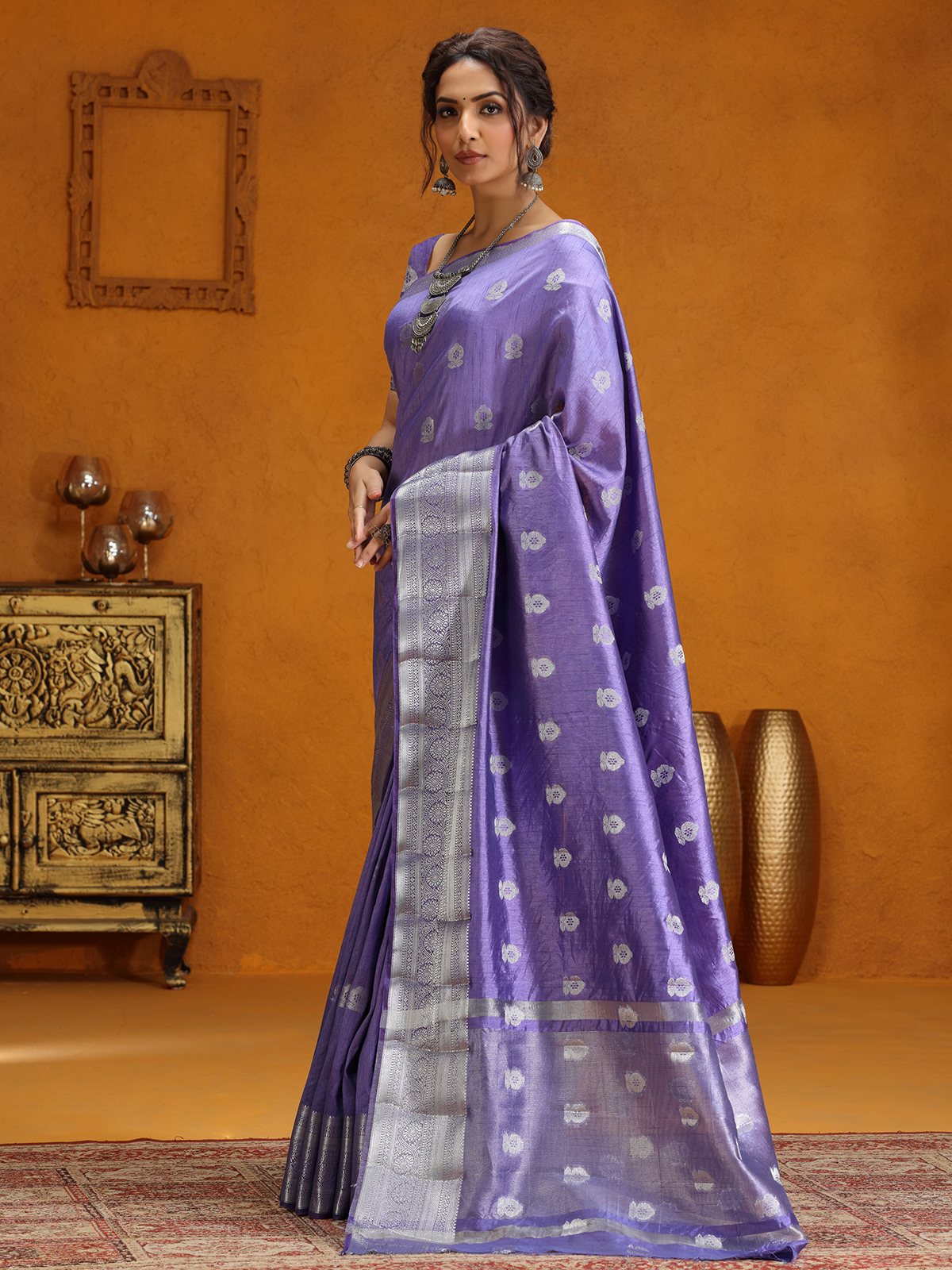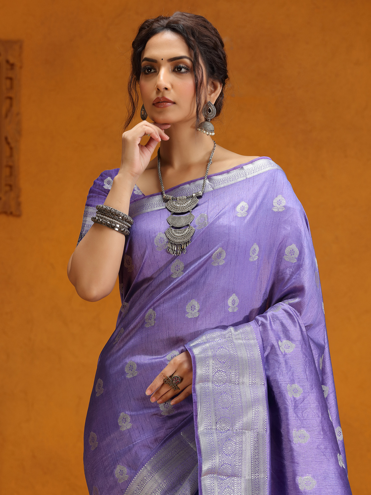 Lavender Silk Saree With Delicate Zari Weaving