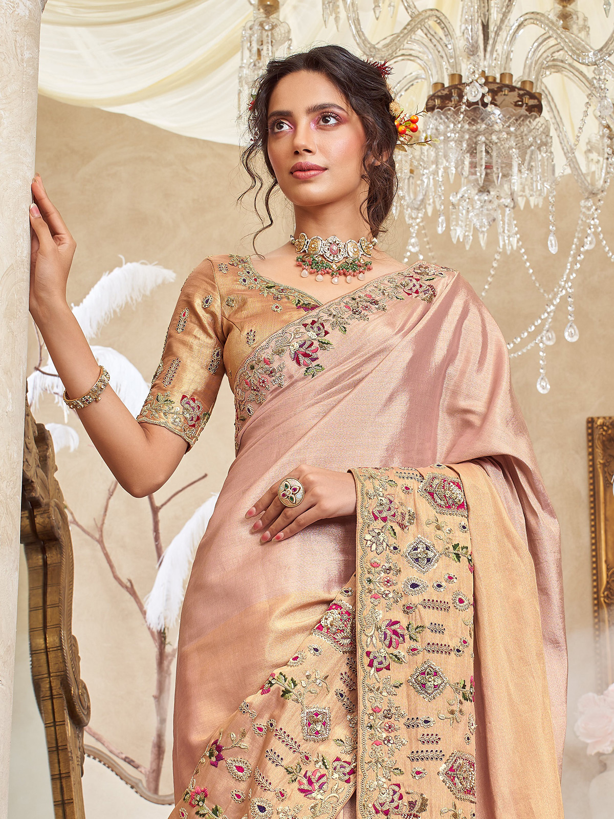 Light Peach Viscose Silk Saree For Wedding Wear