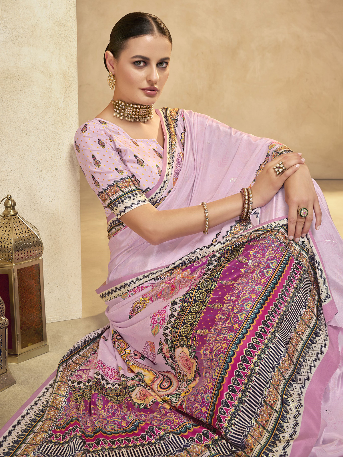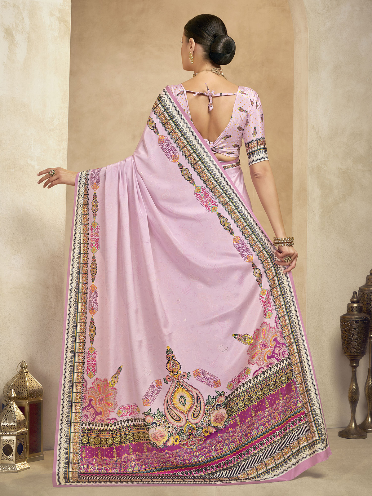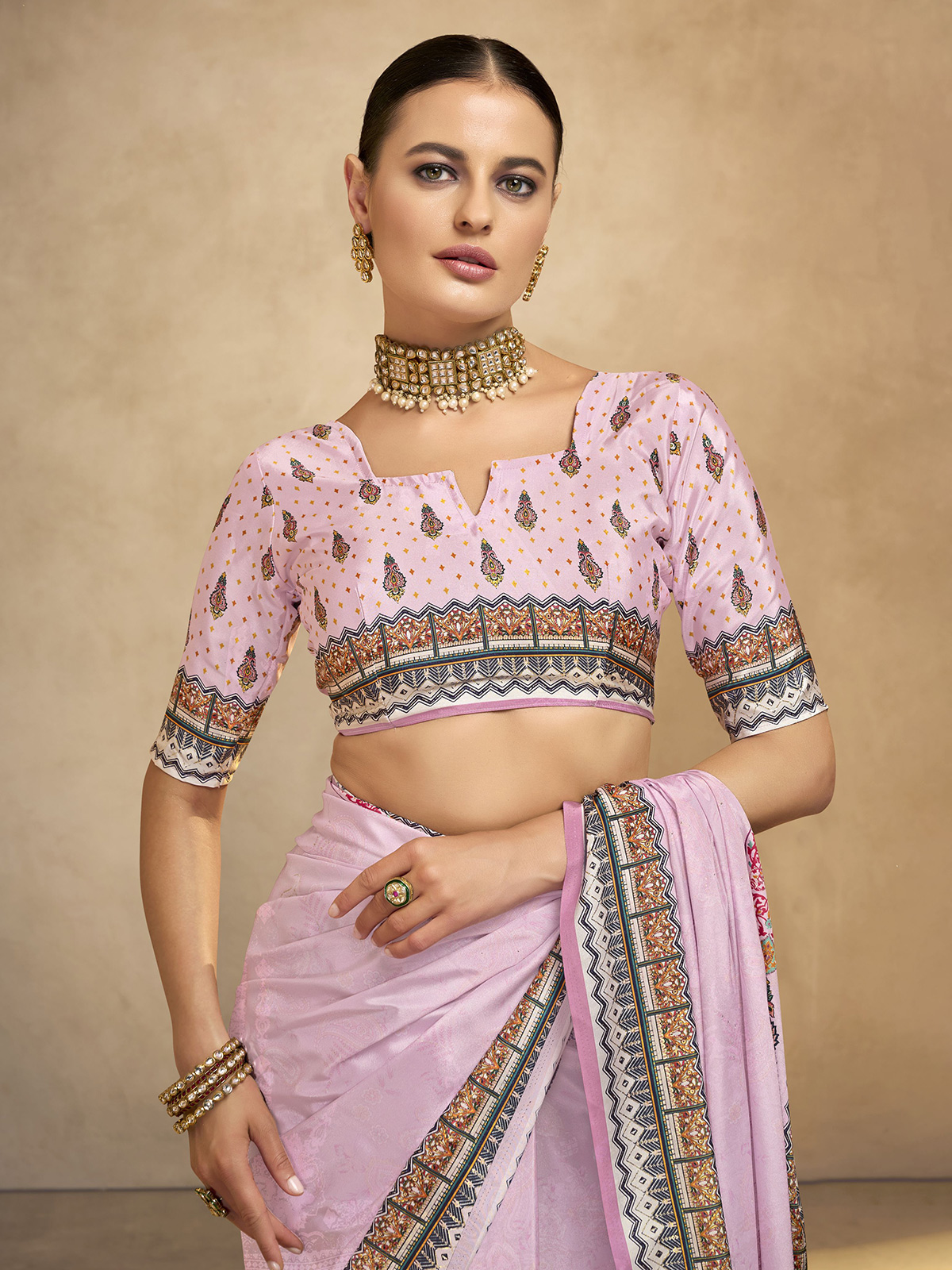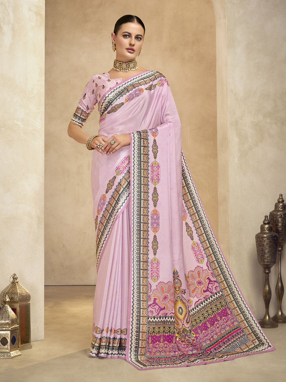 Light Pink Digital Printed Crepe Silk Saree