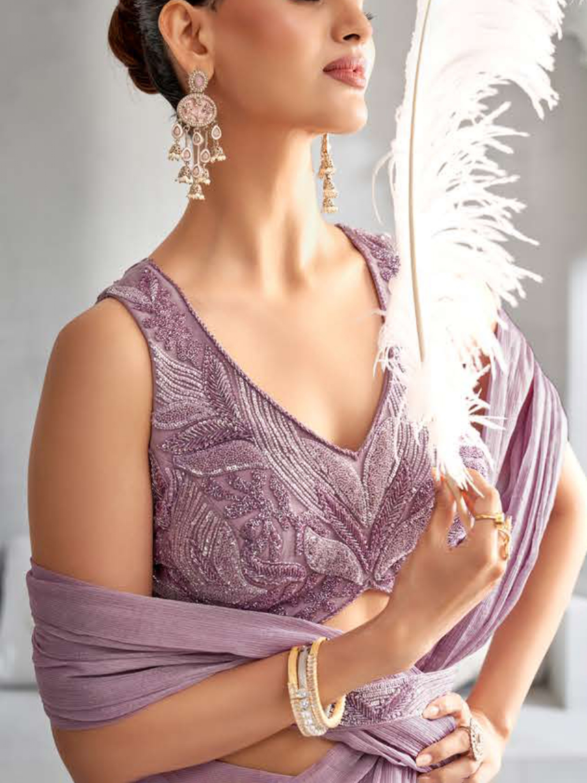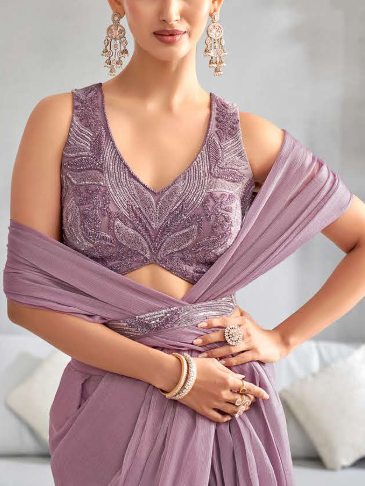 Lilac Purple Embellished Chiffon Ready To Wear Saree