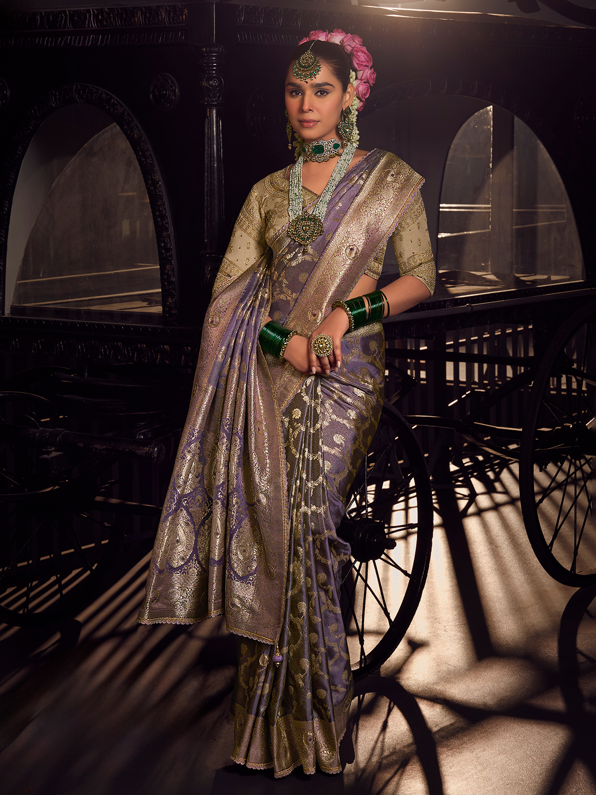 Lilac Purple Viscose Tissue Silk Saree For Festive Look
