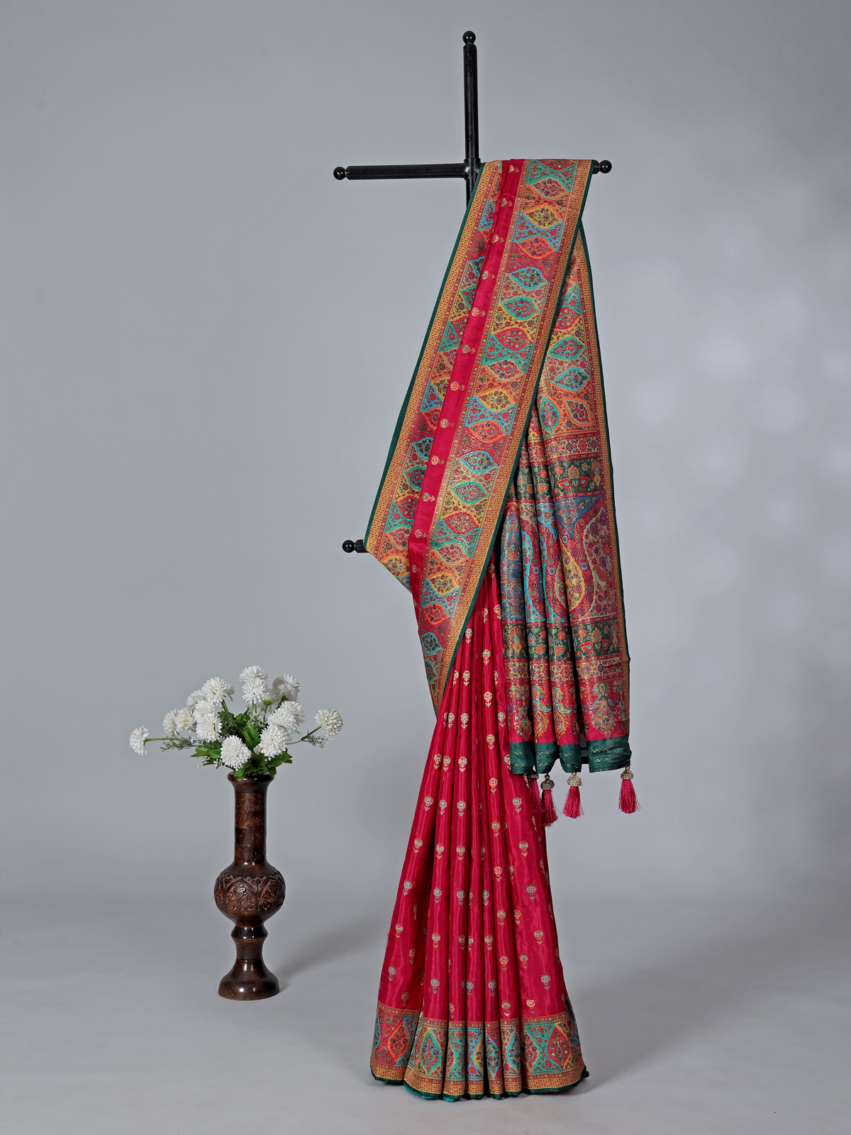 Magenta Art Pashmina Silk Saree Styled For Festive Occasions