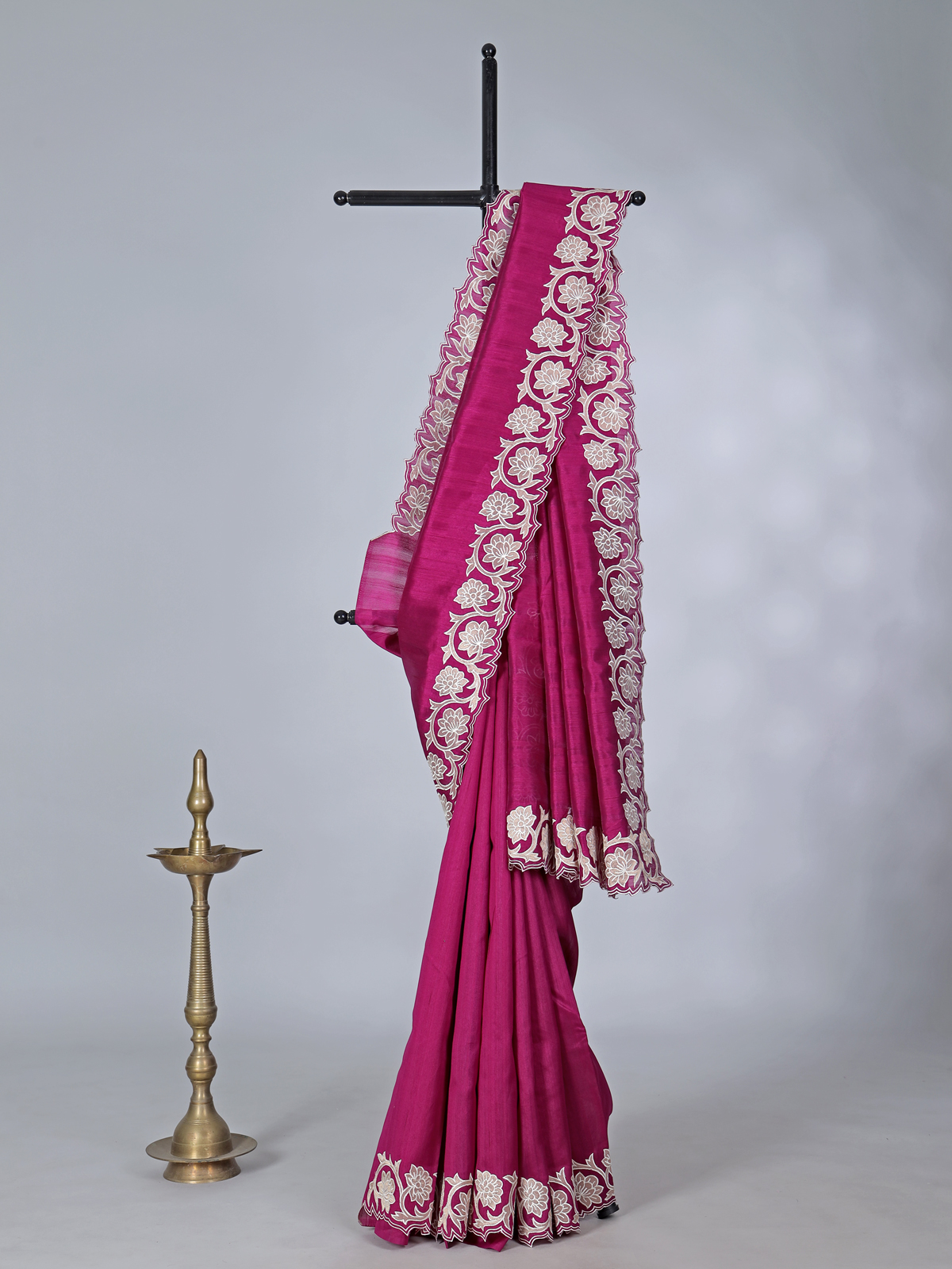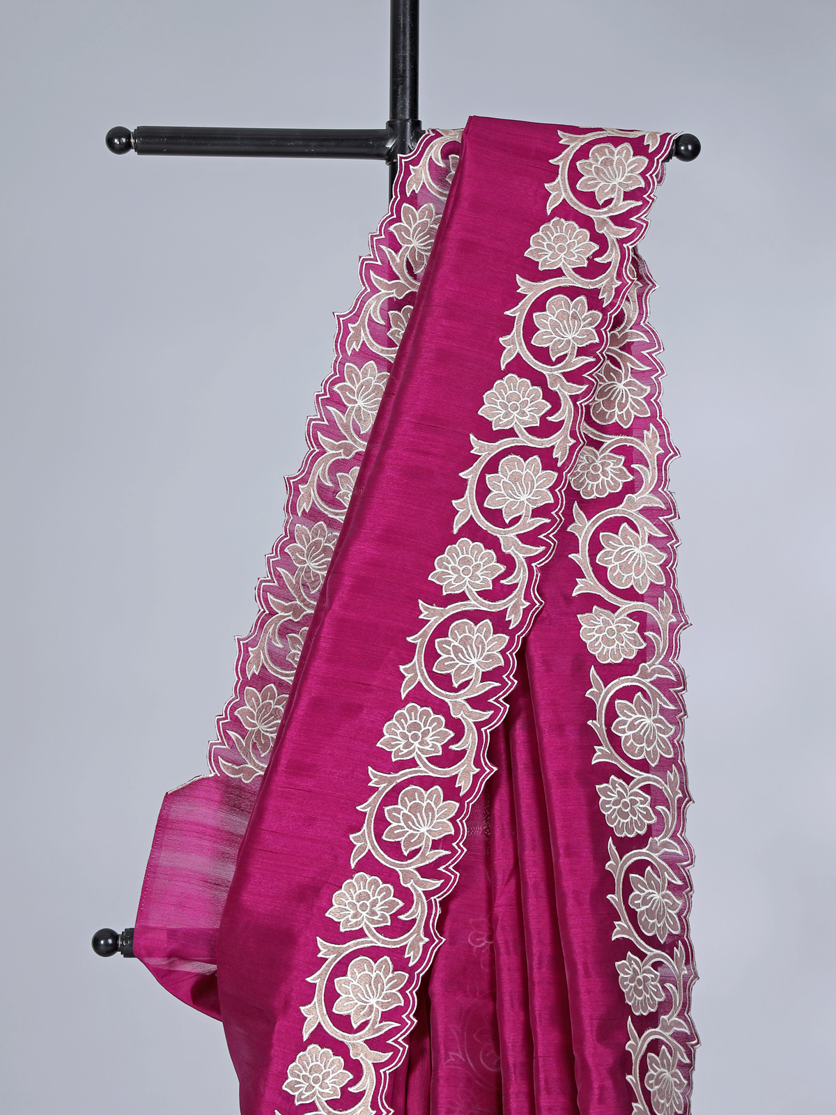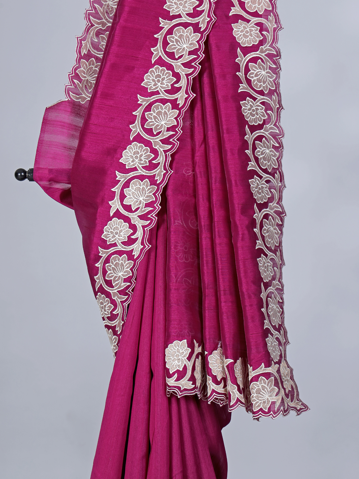 Magenta Issue Silk Saree With Cutwork Border