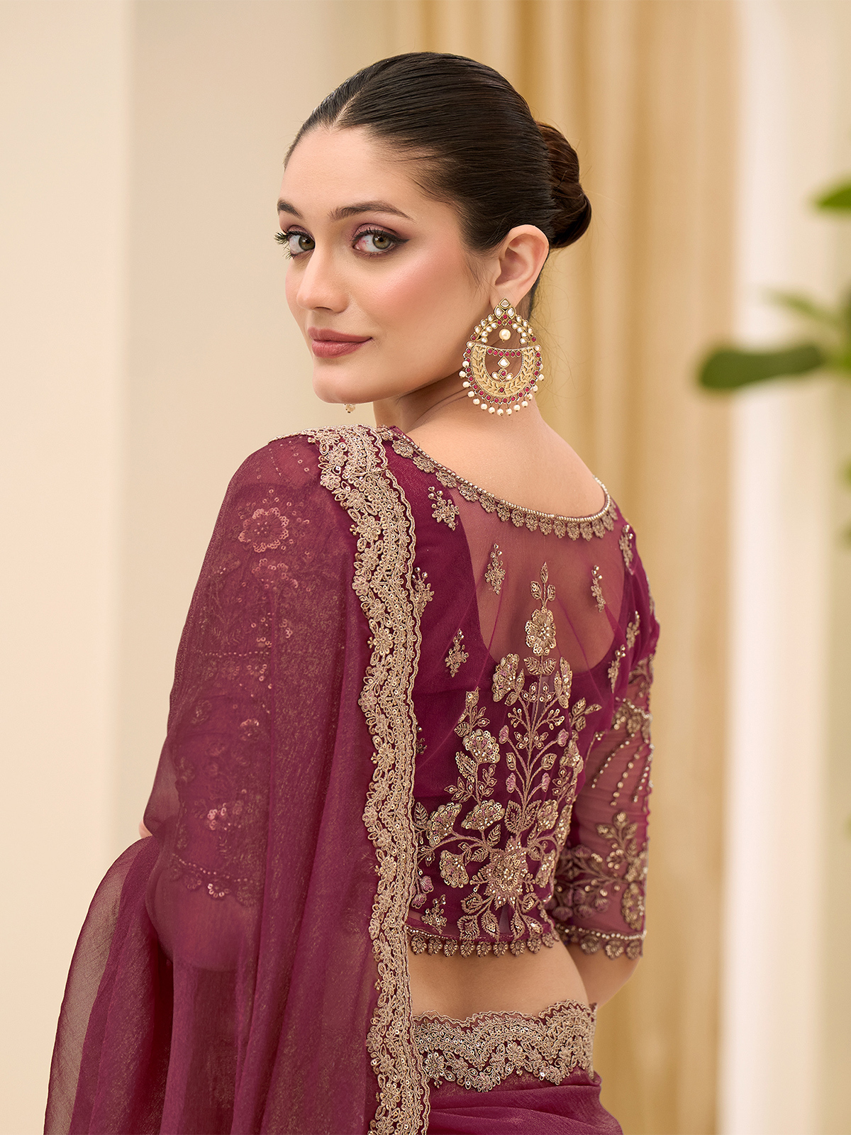 Maroon Georgette Saree With Resham And Sequins Detailing