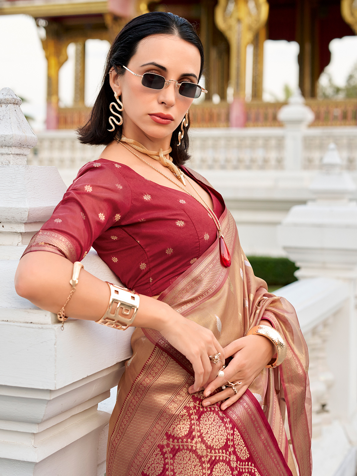 Maroon Tissue Silk Festive Wear Zari Worked Saree
