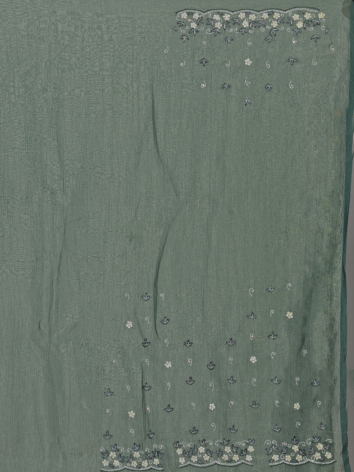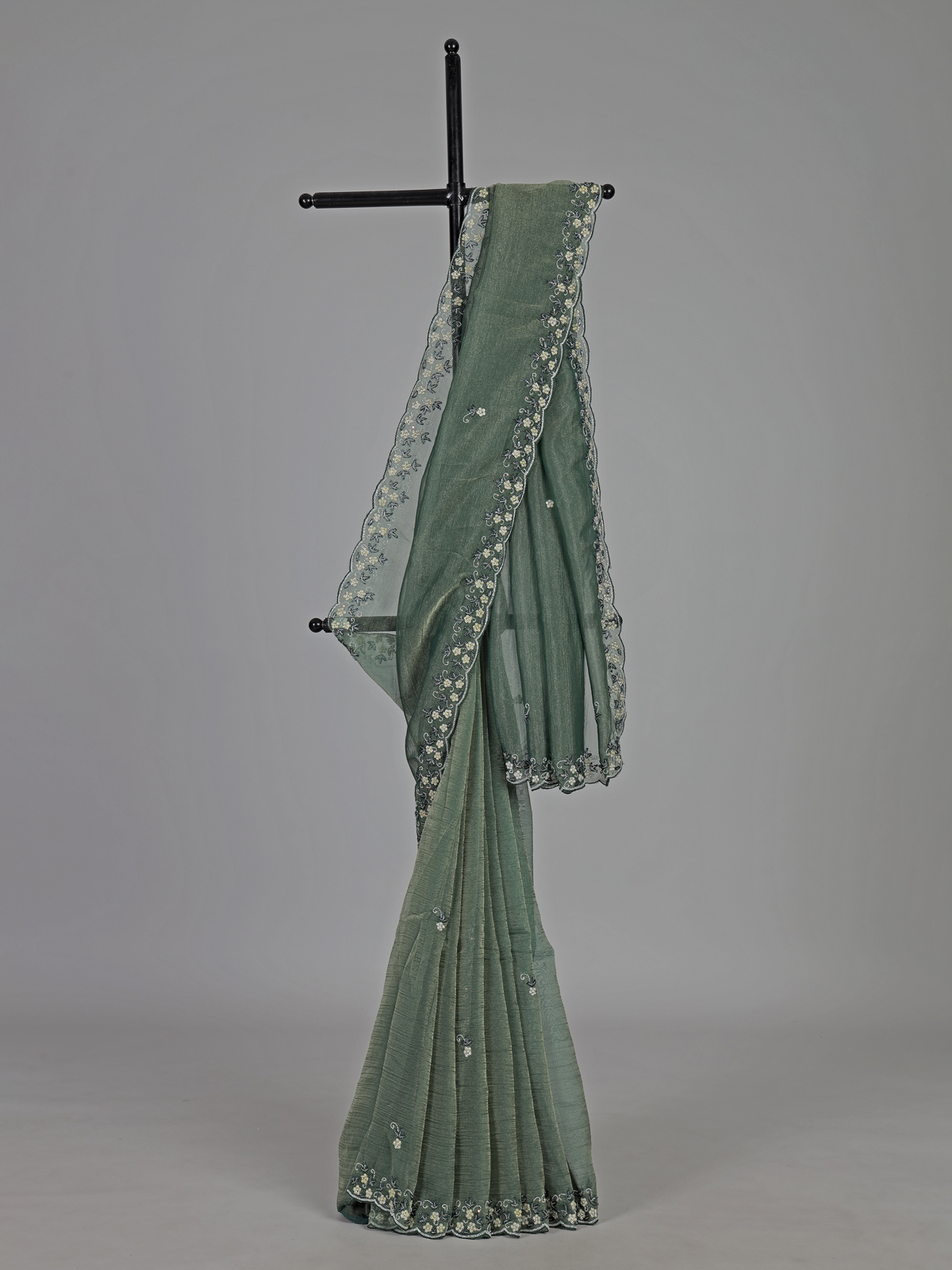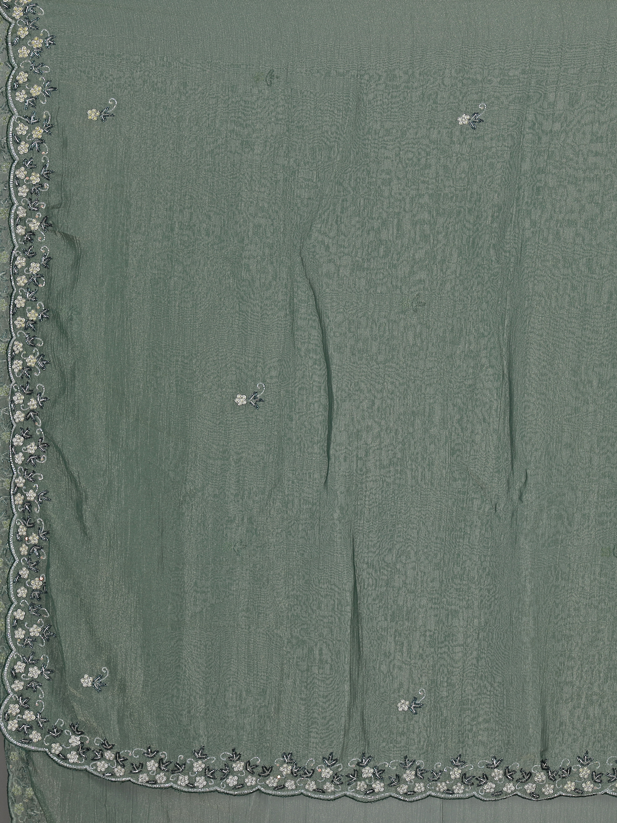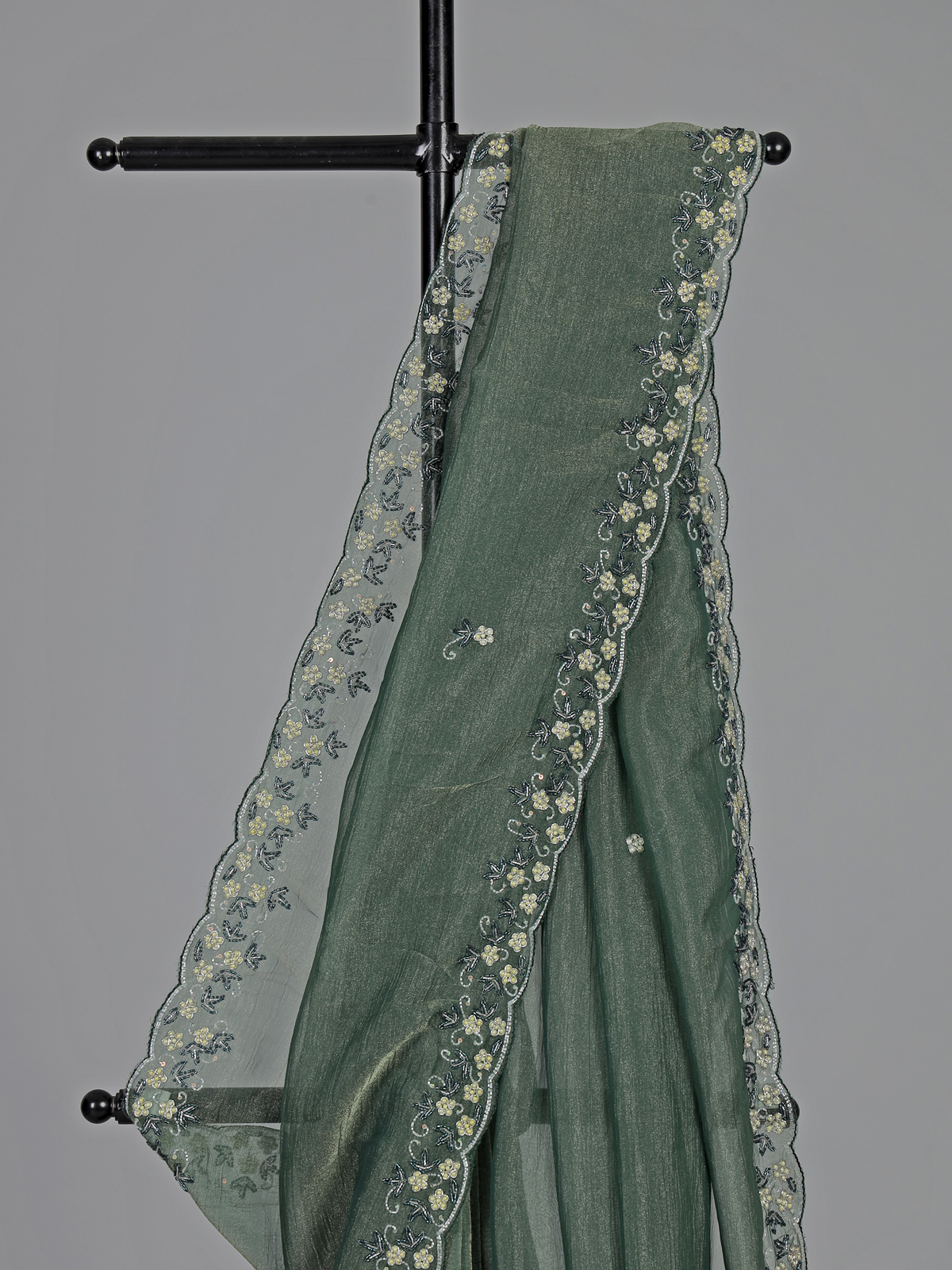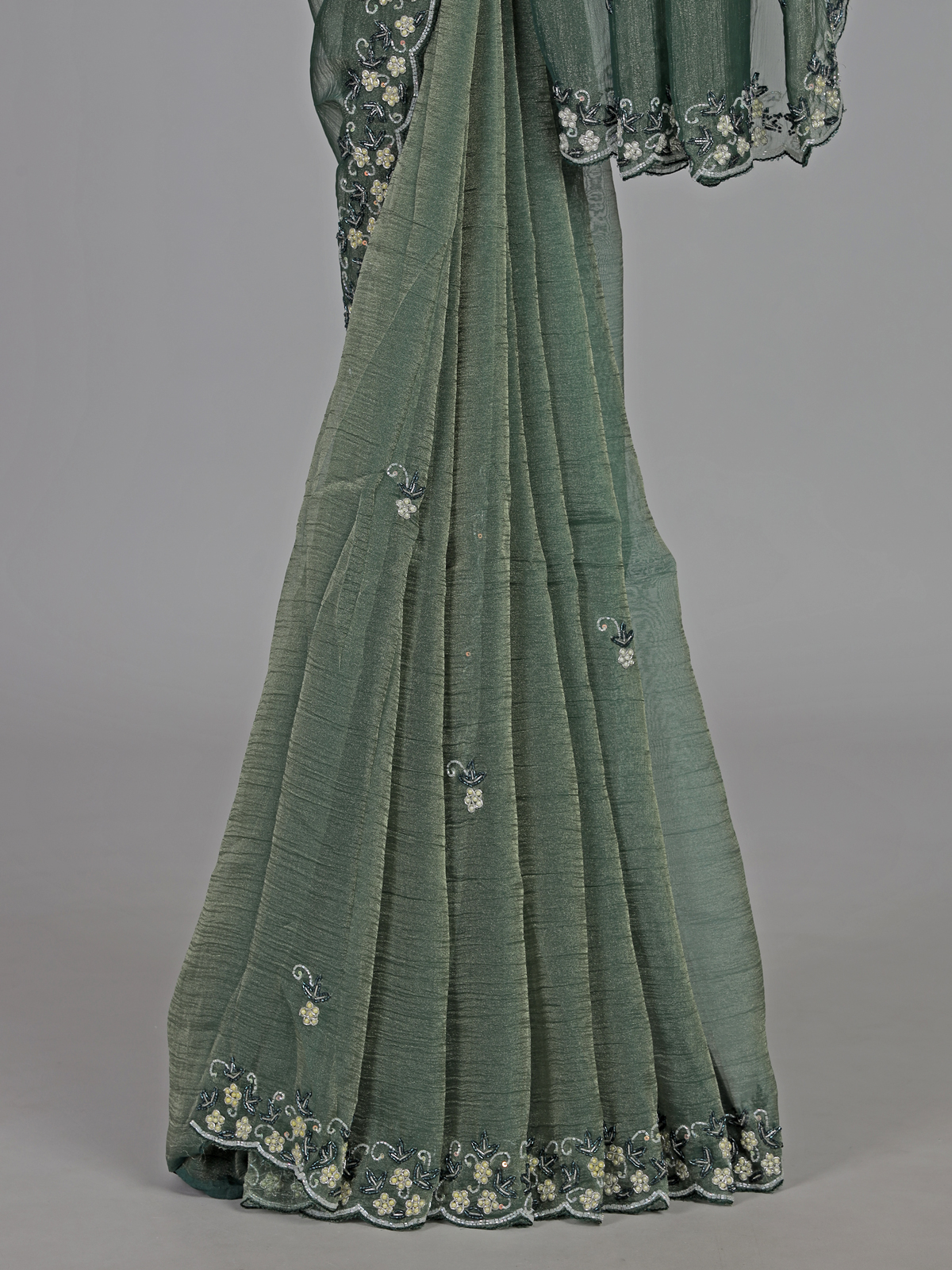 Mehendi Green Chiffon Zardosi Embellished Festive Saree